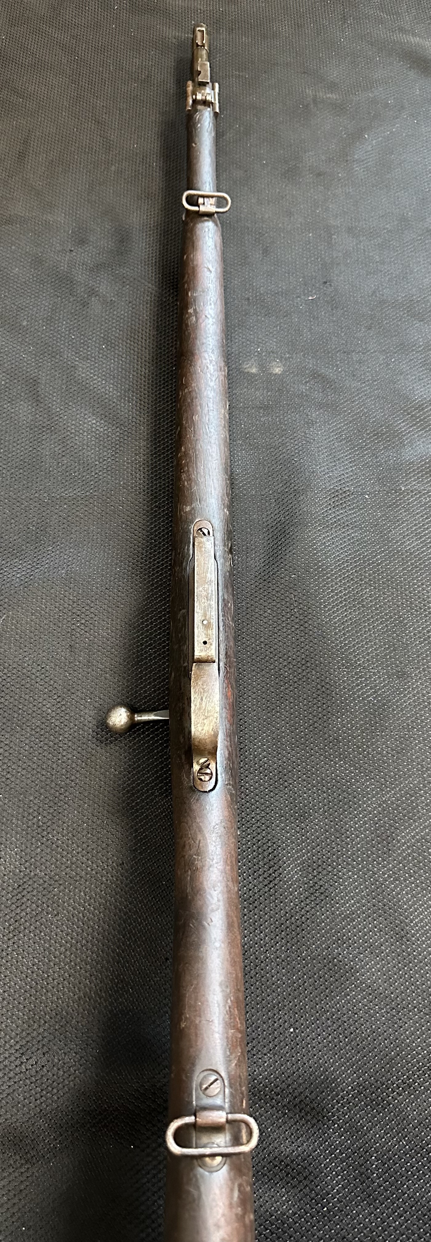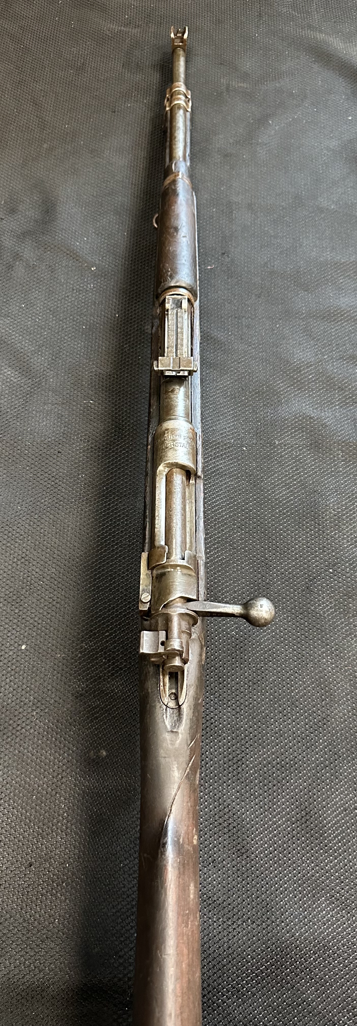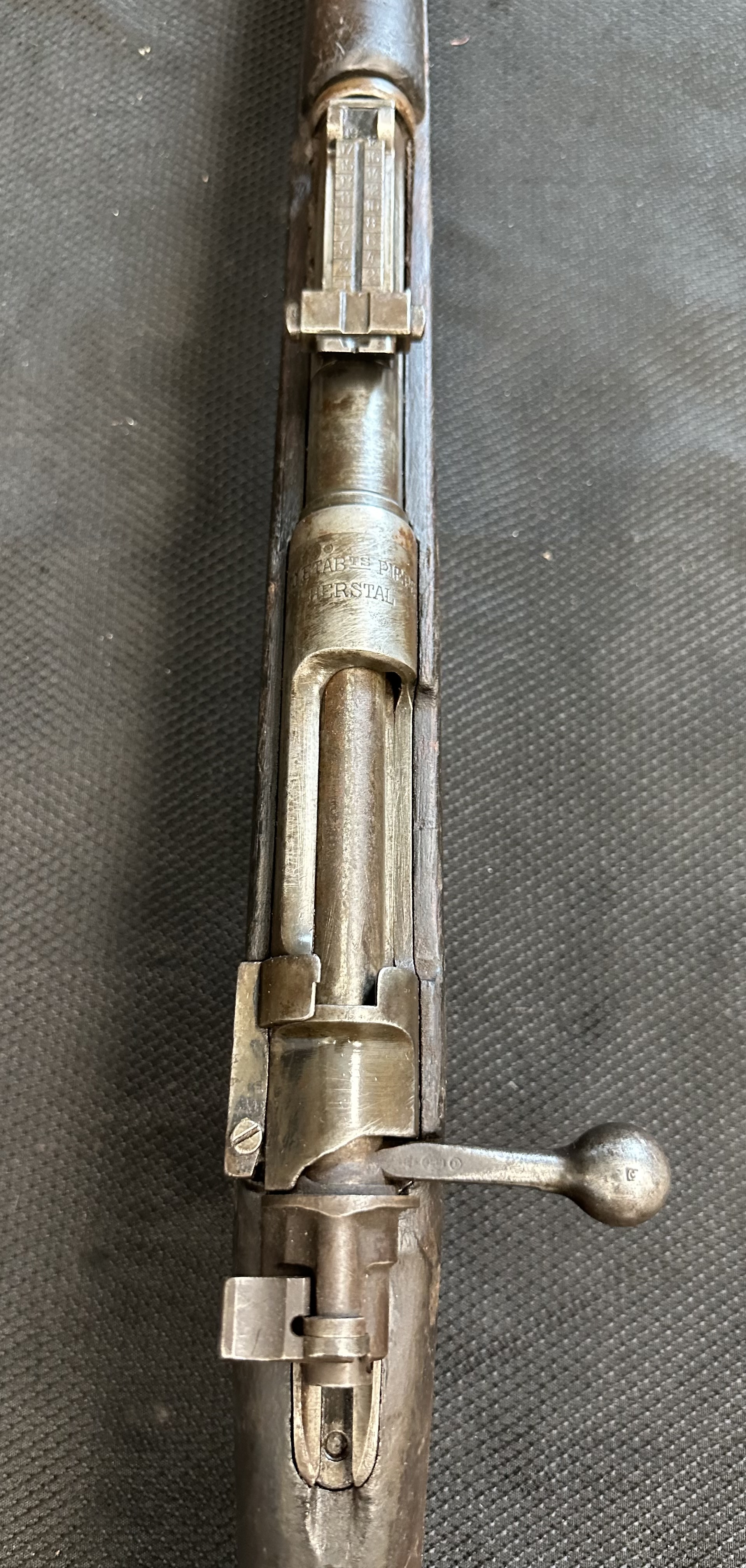 We have for sale a beautiful 1889/36 Congo Mauser. This rifle is not numbers matching. The bore on this particular rifle is in poor condition. The finish on this rifle is in good condition. The wood is in good condition and has some handling wear, dings and scratches from typical use. Please see detailed photos above.