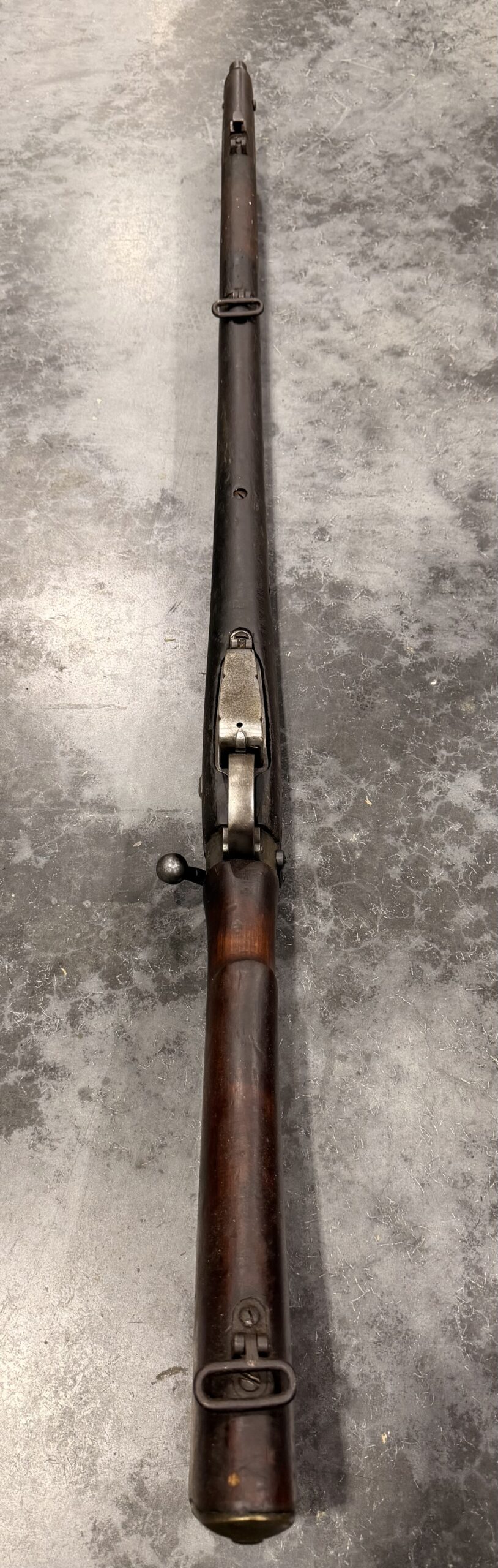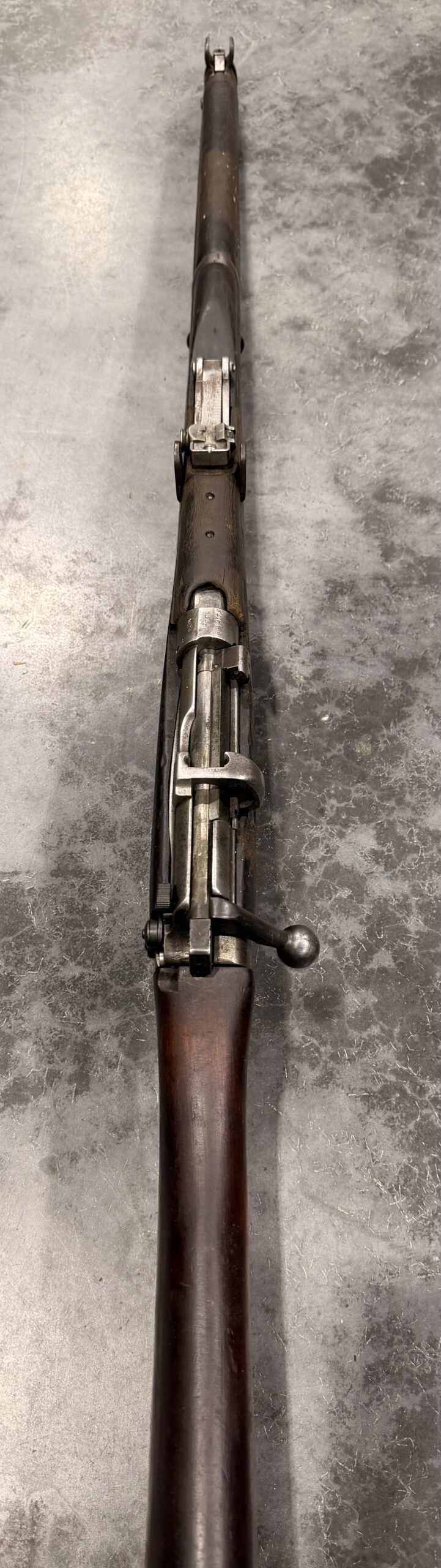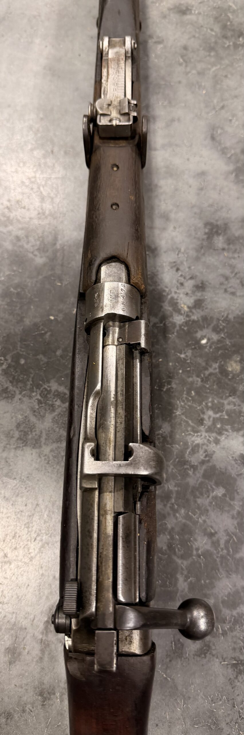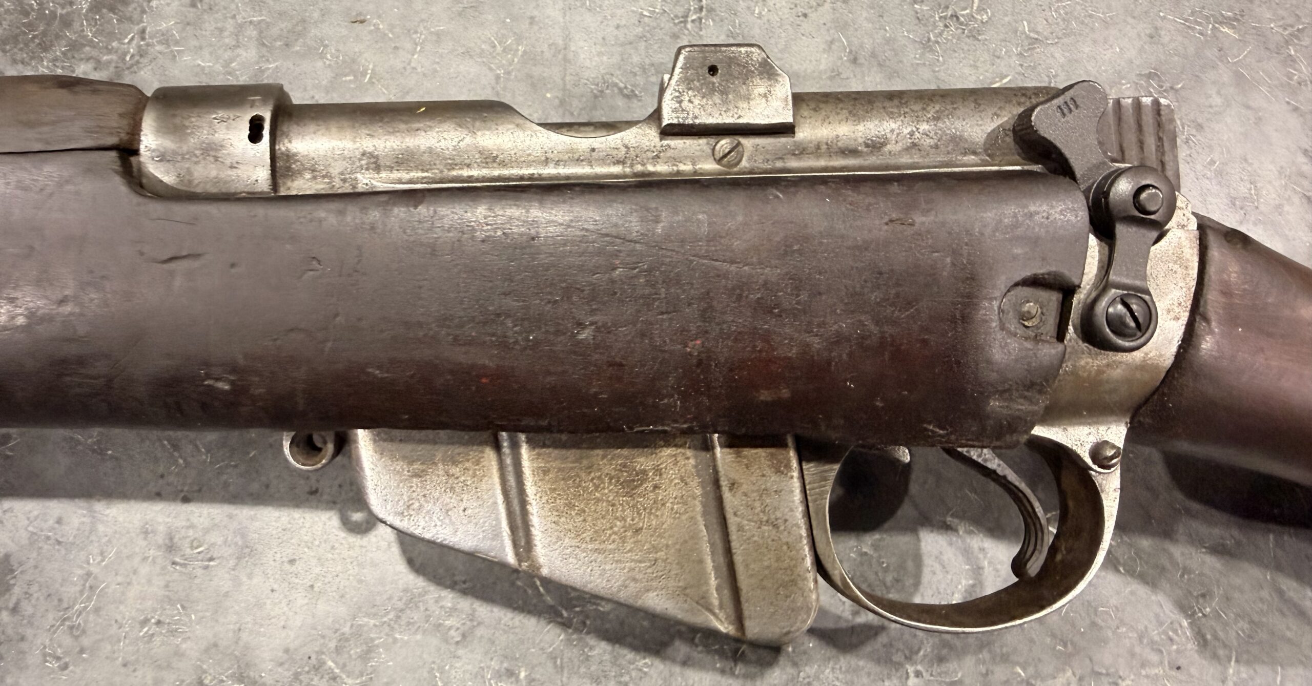 This rifle has non-matching numbers and is complete and functional. The bore is in good condition. The stock is also in good condition, showing normal handling wear, including dings and scratches consistent with typical use.