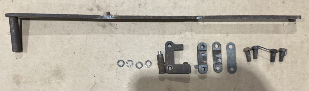 We have a few 1919A4E1 Tank Gun Conversion Charging Handle Assemblies available. Each set includes the front and rear mounting brackets, charging handle stud, and charging handle extension. Condition is fair to good and may require some cleaning.