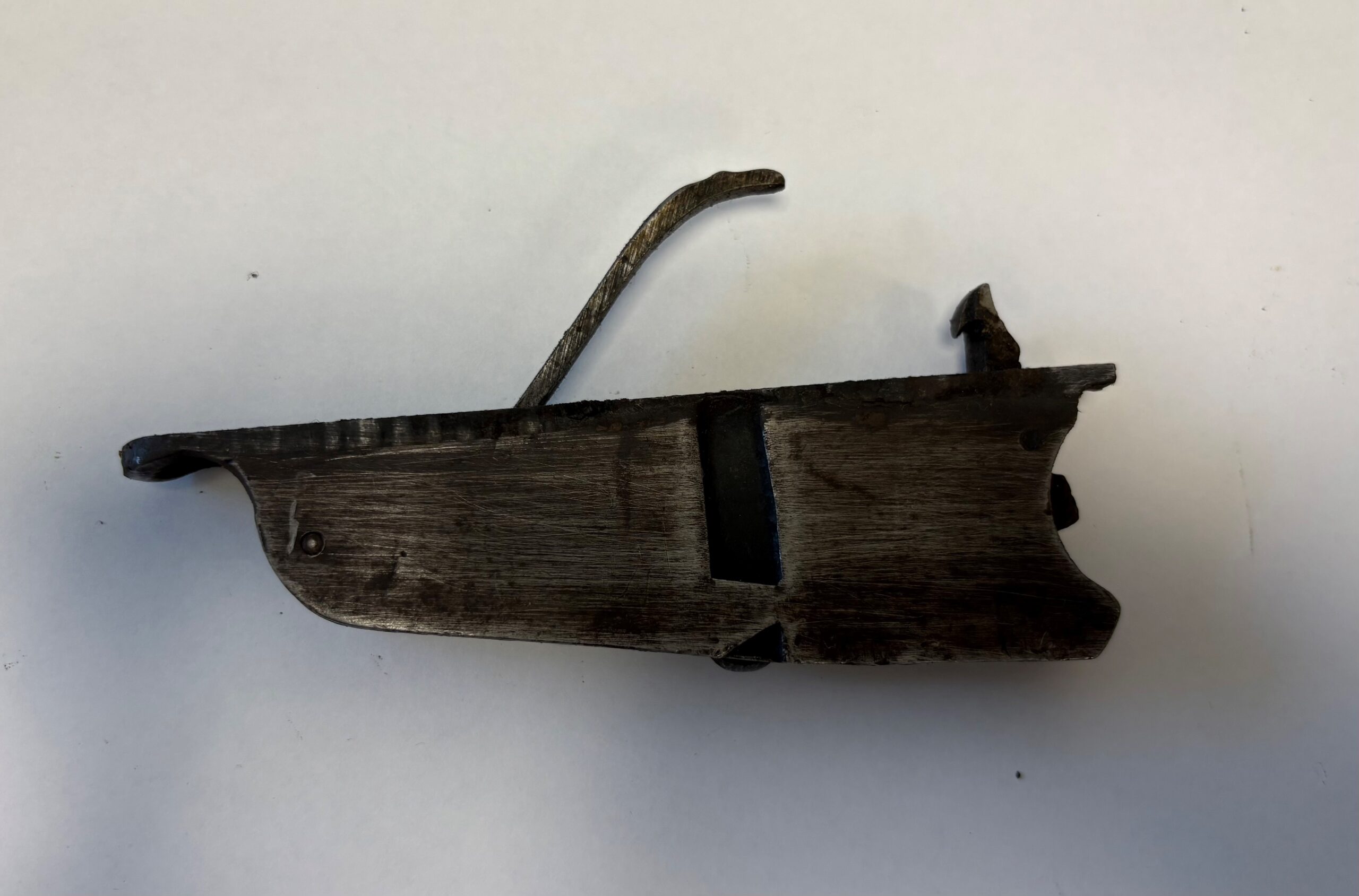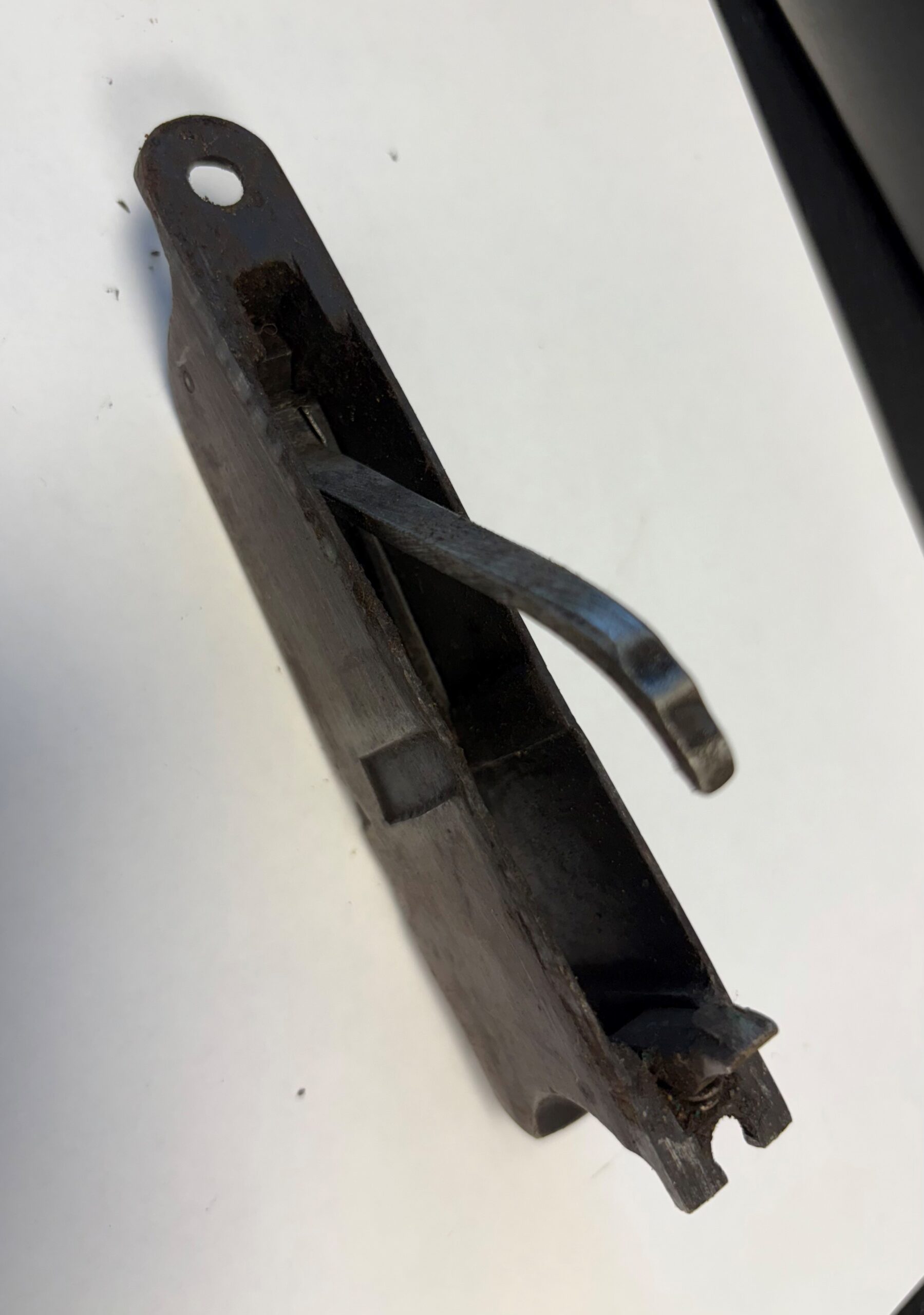 Original magazine box with follower for the Italian Vetterli 1870/87/15 rifle (6.5mm Carcano conversion). This assembly houses and guides the cartridges, feeding them into the chamber during cycling. Shows typical wear due to its age. Solid overall condition—ideal for restoration projects or replacing missing/damaged parts. Sold as-is—please ensure compatibility before purchase.