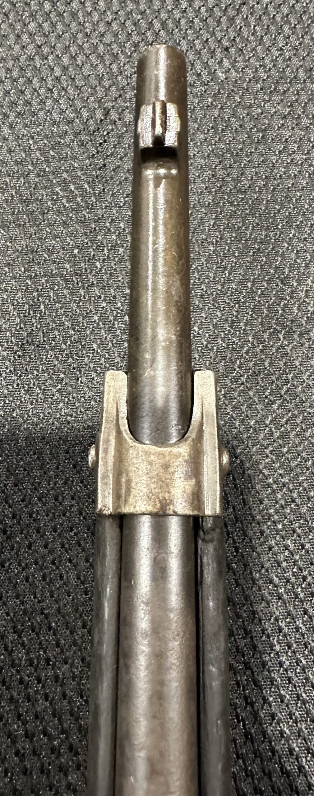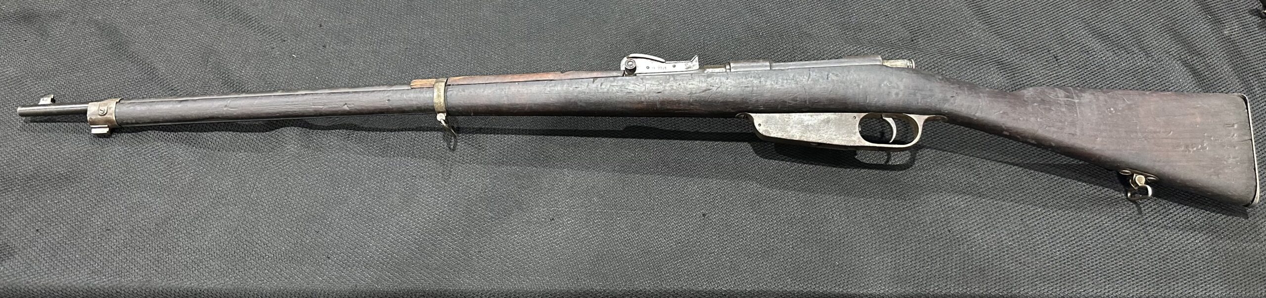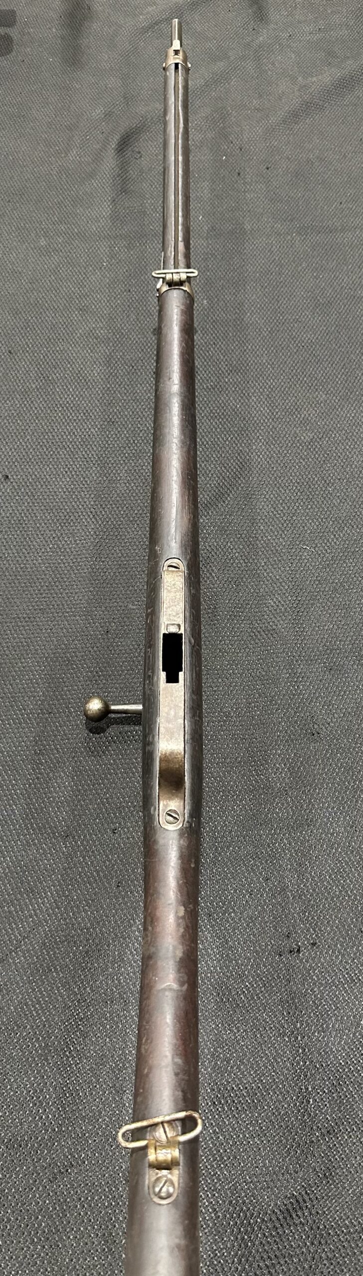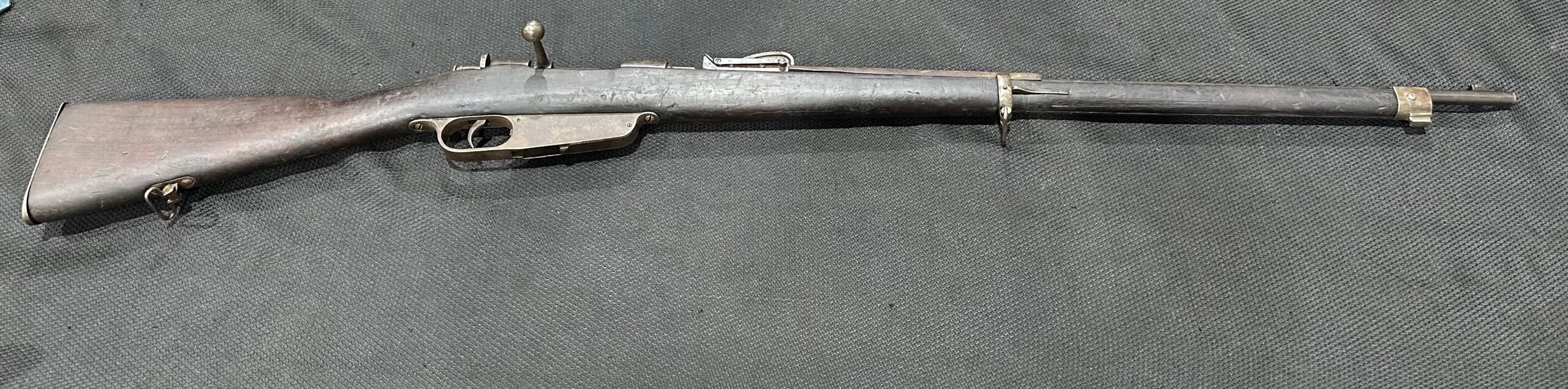 This Antique 1891 Carcano rifle was manufactured by Torino in 1893. The bore is in poor to fair condition and would benefit from light cleaning. The rifle retains its original finish, which remains in good condition. The wood is structurally sound overall, showing typical handling wear, including dings and scratches. Please note there are a few small cracks in the buttstock, and a small piece of wood is missing from the upper handguard. This is the exact rifle you will receive.