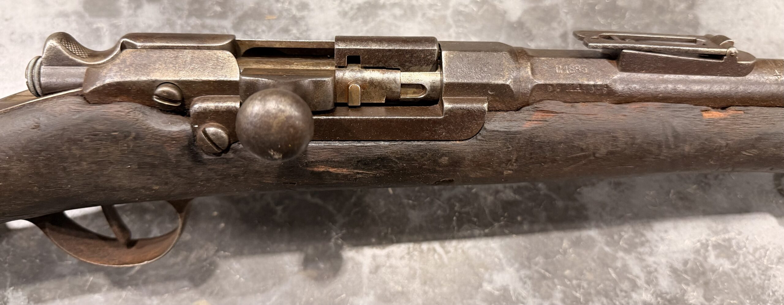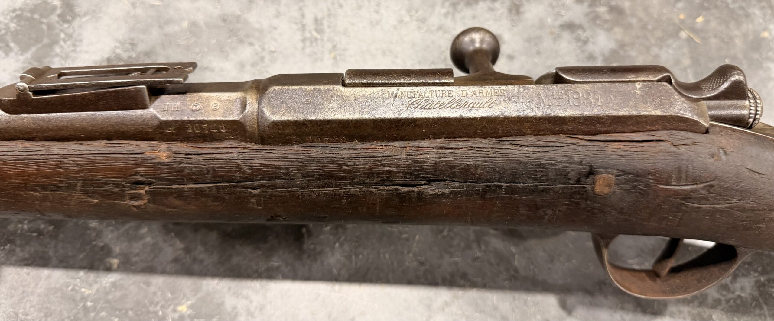 This rifle was manufactured by Châtellerault in 1885 and features matching bolt. Please note that the bolt is functional and the lifter moves up and down, however it does not operate properly.