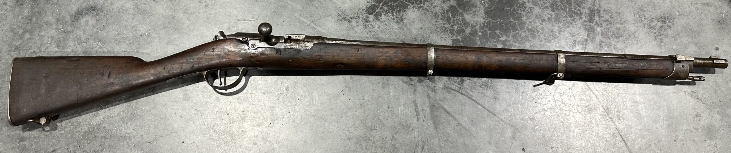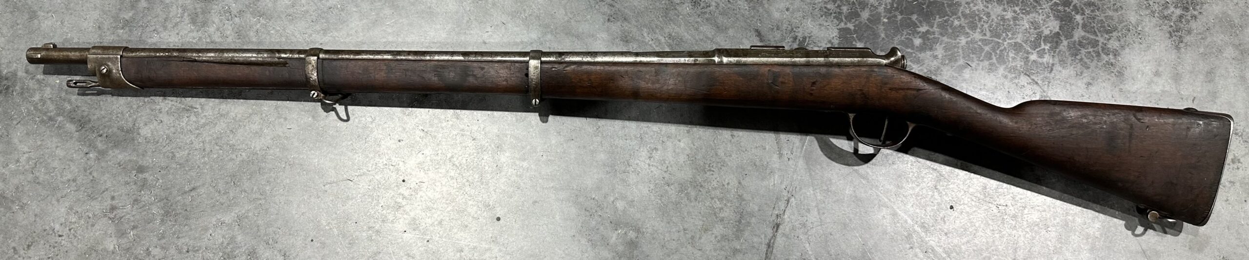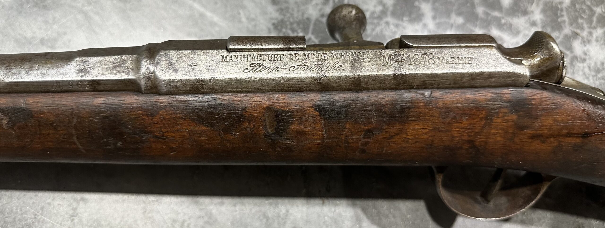We just received a gorgeous and very rare ANTIQUE KROPATSCHEK Steyr Autriche MLE 1878 Marine Rifle, Serial Number A9636.