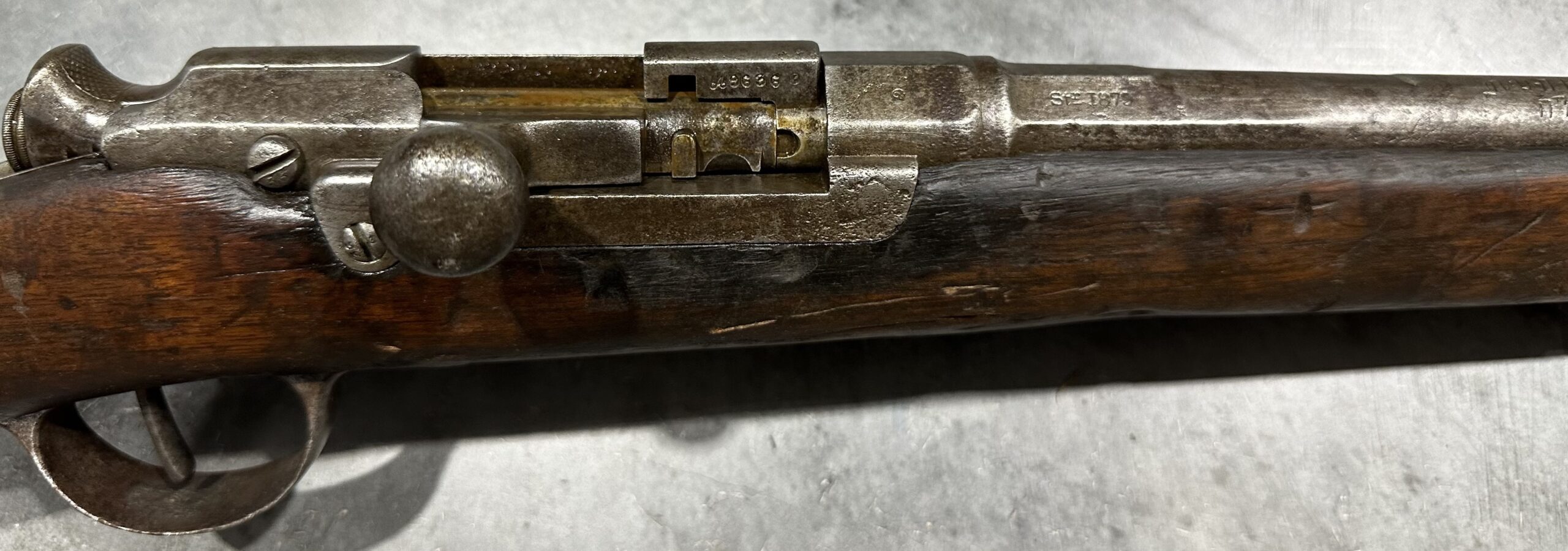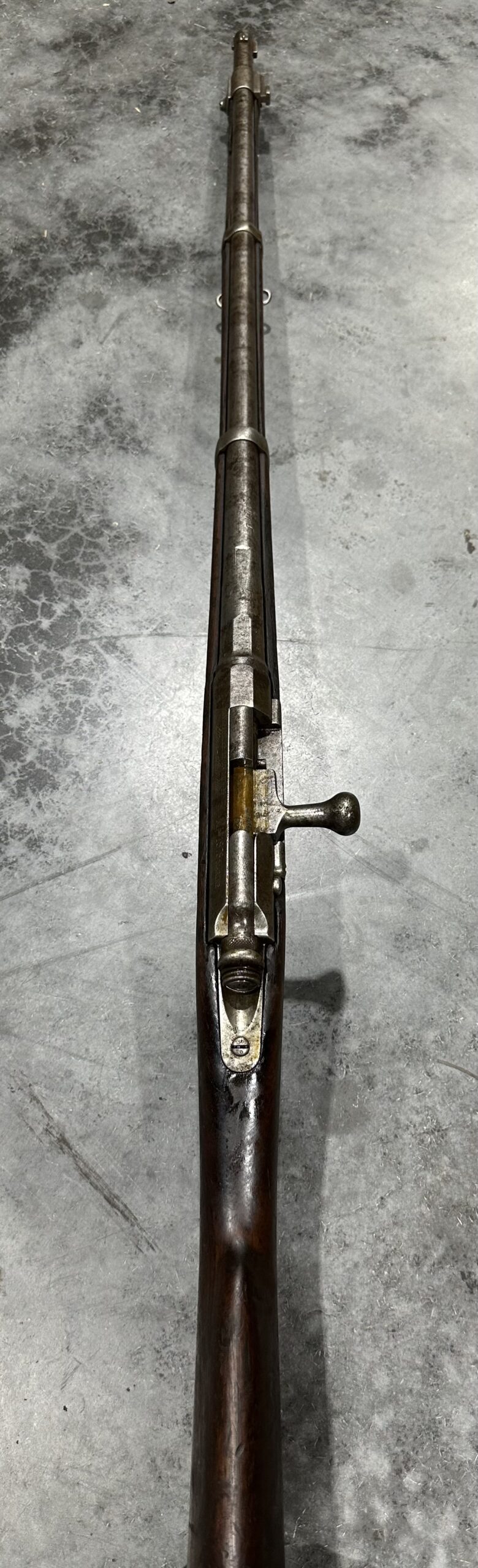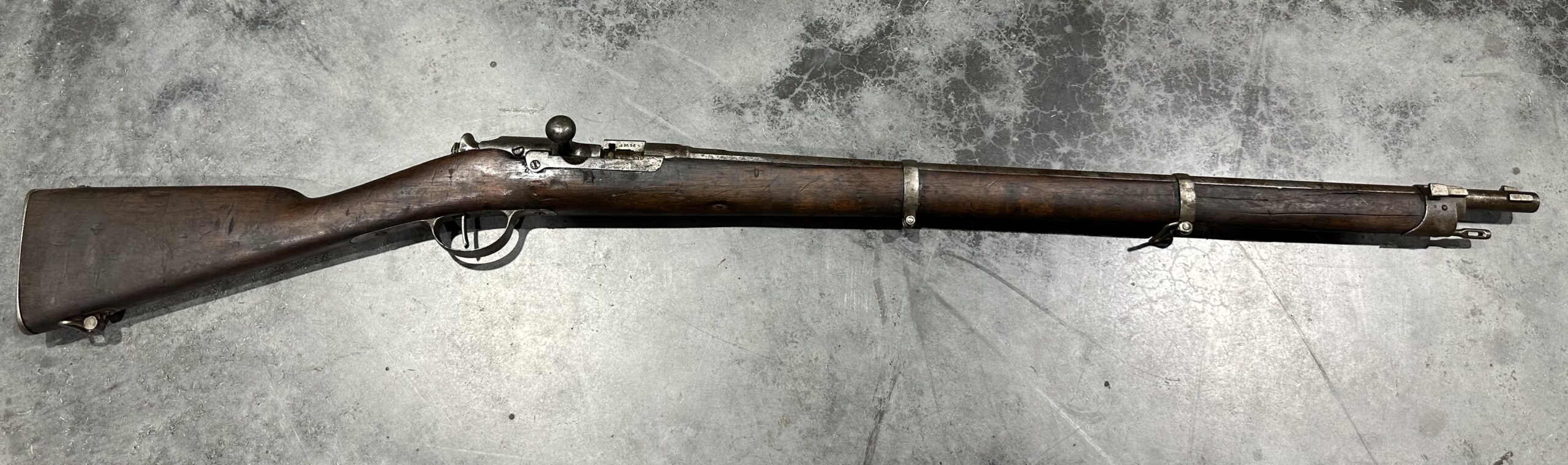 We just received a gorgeous and very rare ANTIQUE KROPATSCHEK Steyr Autriche MLE 1878 Marine Rifle, Serial Number A9636.