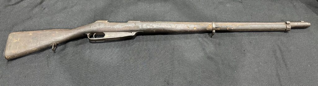 We have for sale 1 GEWEHR 88 Rifle. This rifle was manufactured by Spandau in 1891. The bore on this particular rifle is in poor condition. Missing bolt and rear sight, has a blocked barrel, and features a handmade stock.