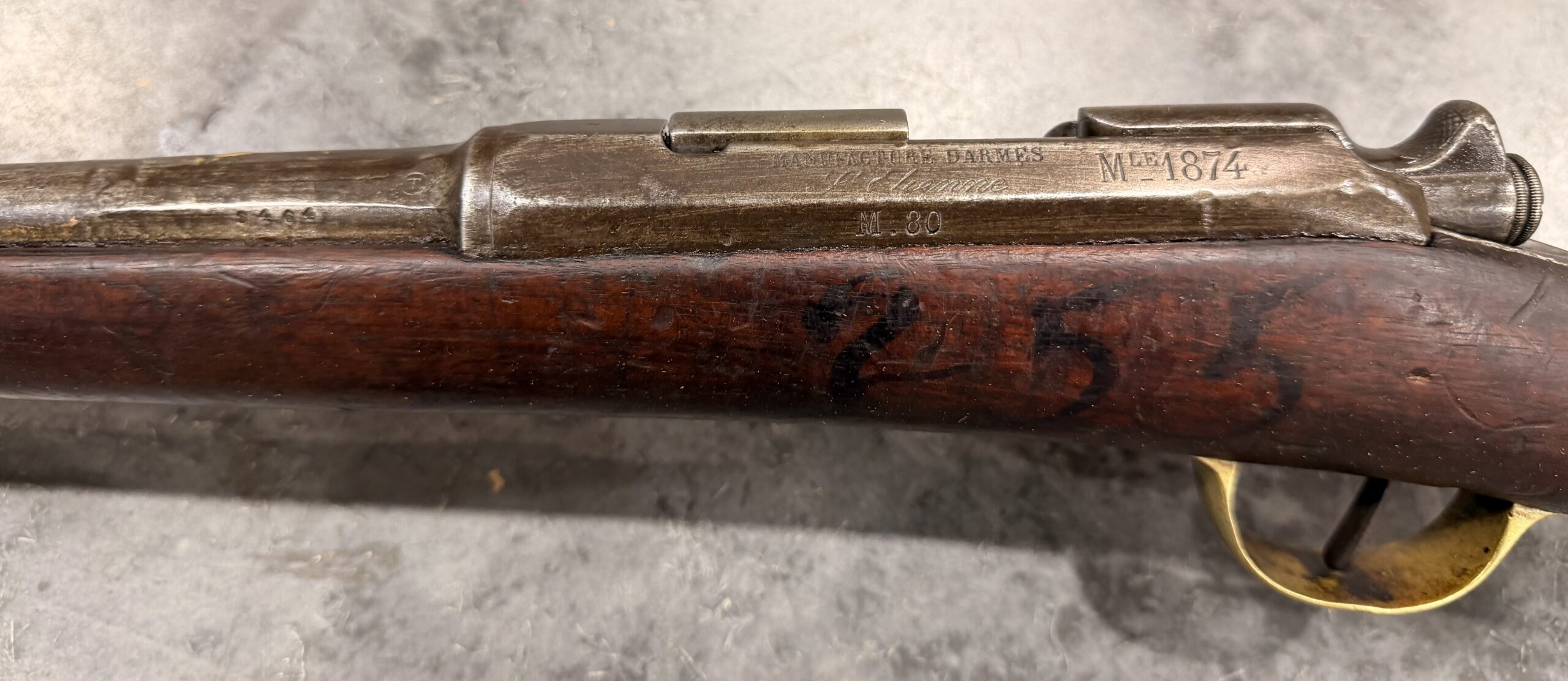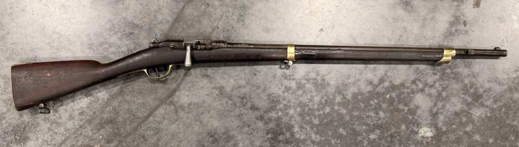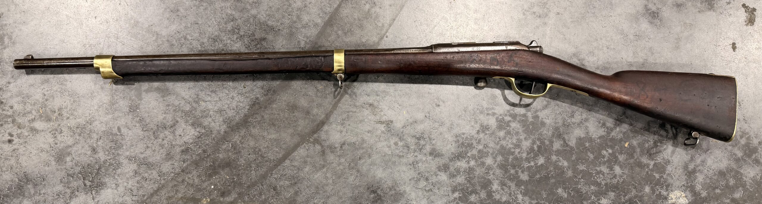 We have for sale one ANTIQUE St. Etienne Mle 1874 Gendarmerie Carbine, chambered in 11mm Gras, with non-matching serial numbers. It was manufactured in 1881.
