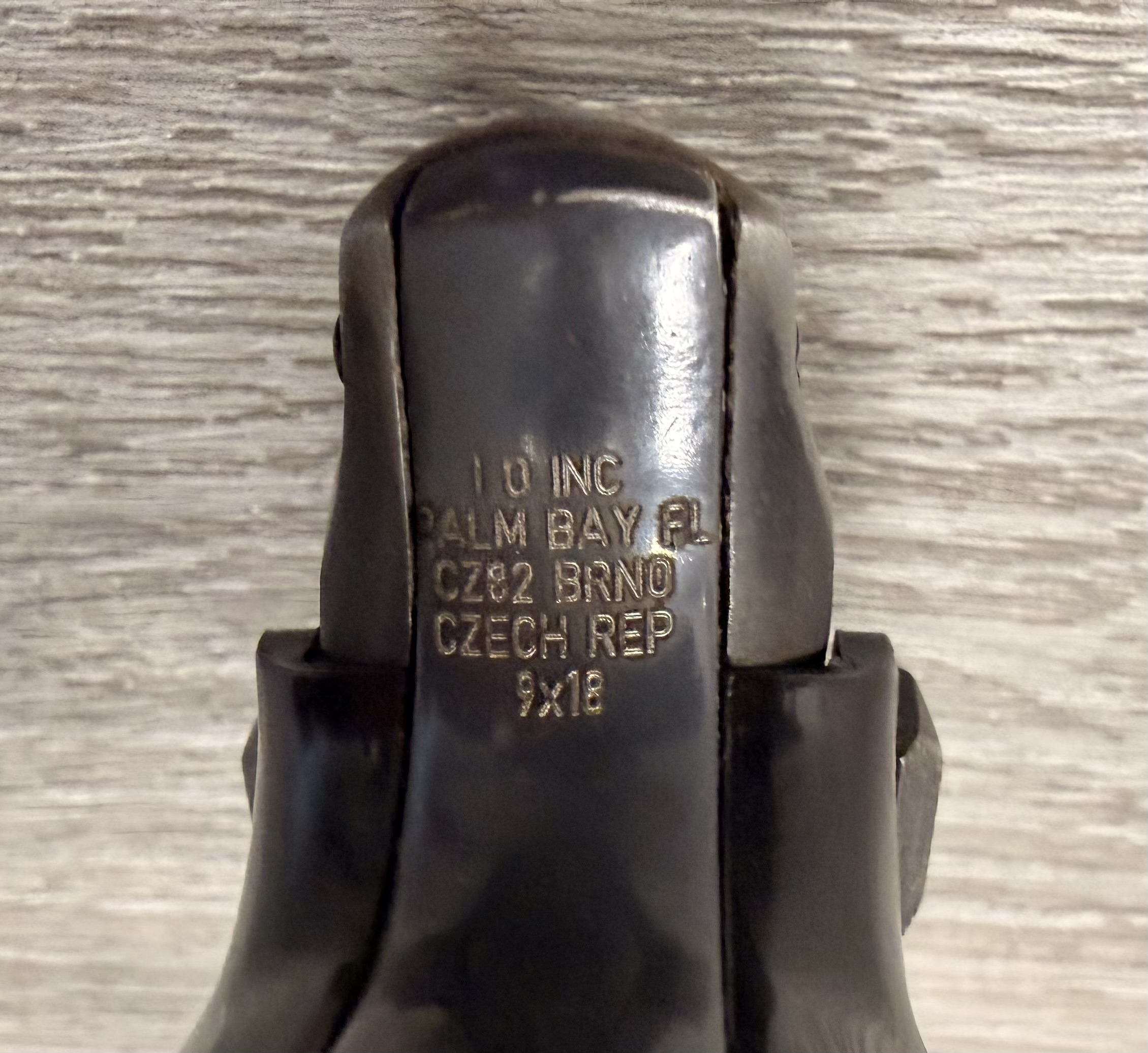 Arsenal Refurbished CZ82 Pistol with FREE original leather holster, 9×18 Makarov. This pistol is in very good condition. The grips are also in very good condition with no cracks. The bore is in very good condition. The pistol is numbers matching frame and slide. The pistol is 100% functional and comes with one 12 round magazine. The pistol is import marked on the rear strap underneath the hammer on the frame.