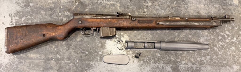 Includes a new reproduction upper handguard metal frame, upper handguard clip and front sight hood. May include an original buttplate or new reproduction buttplate. Upper handguard wood is not included.