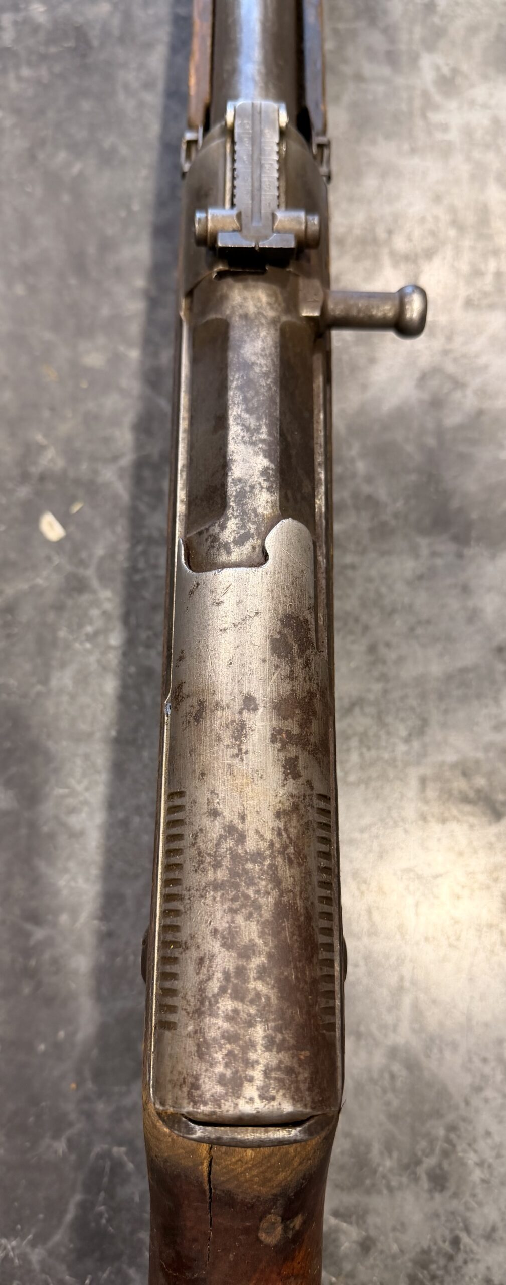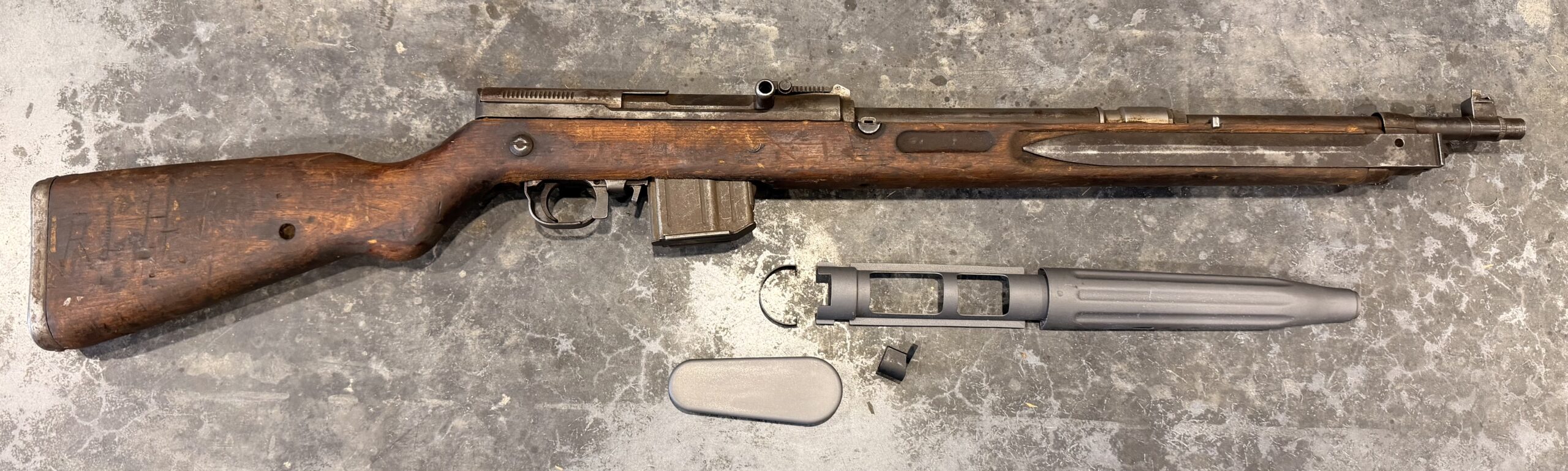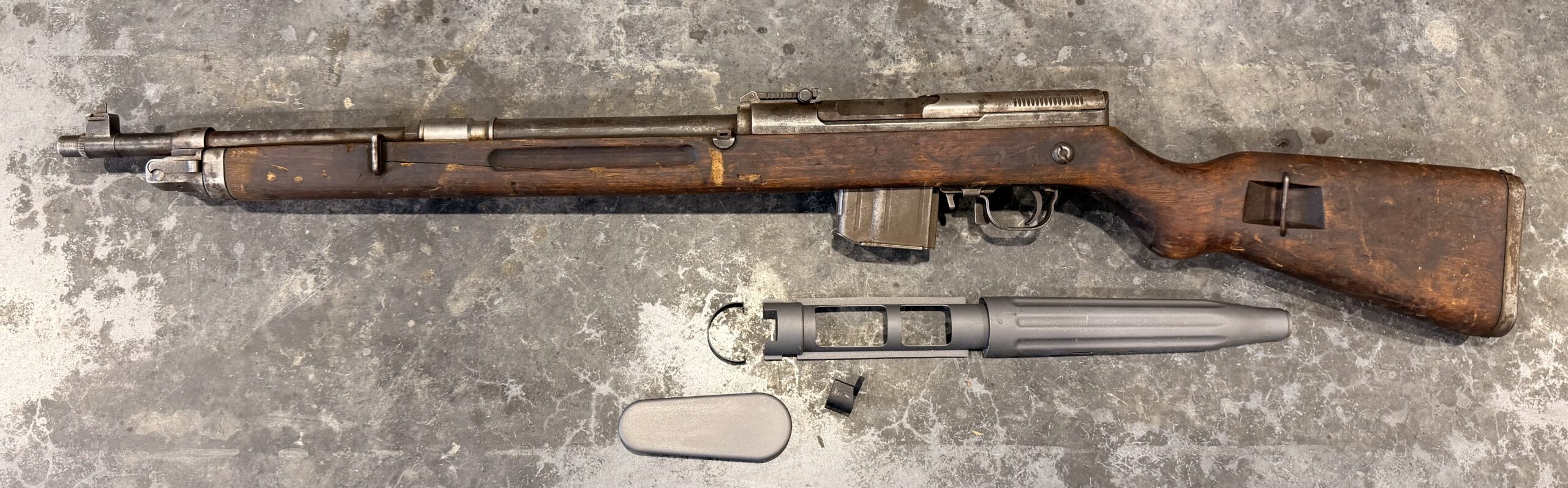 I was expecting a rifle that was just parts, but besides the hanguard and a bolt spring, it was complete. There were various cracks in the stock, but I was able to repair them. The handguard was a little pricey, but I have a functional rifle with 30% rifling. The bluing was surprisingly good at 60% and for the money, it was worth it.