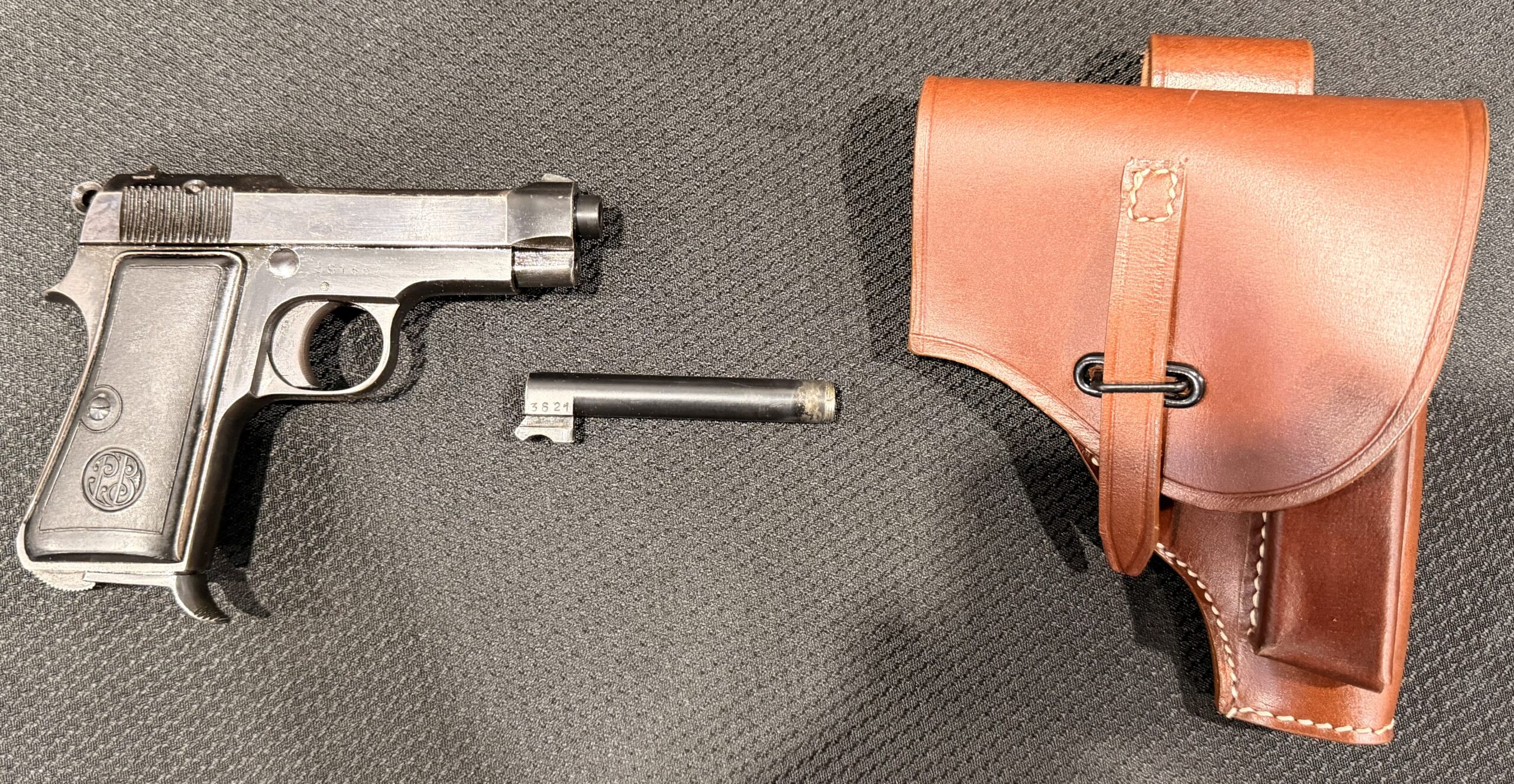 Comes with an extra non matching threaded barrel and Beretta holster, a high-quality reproduction made from genuine leather and steel hardware.