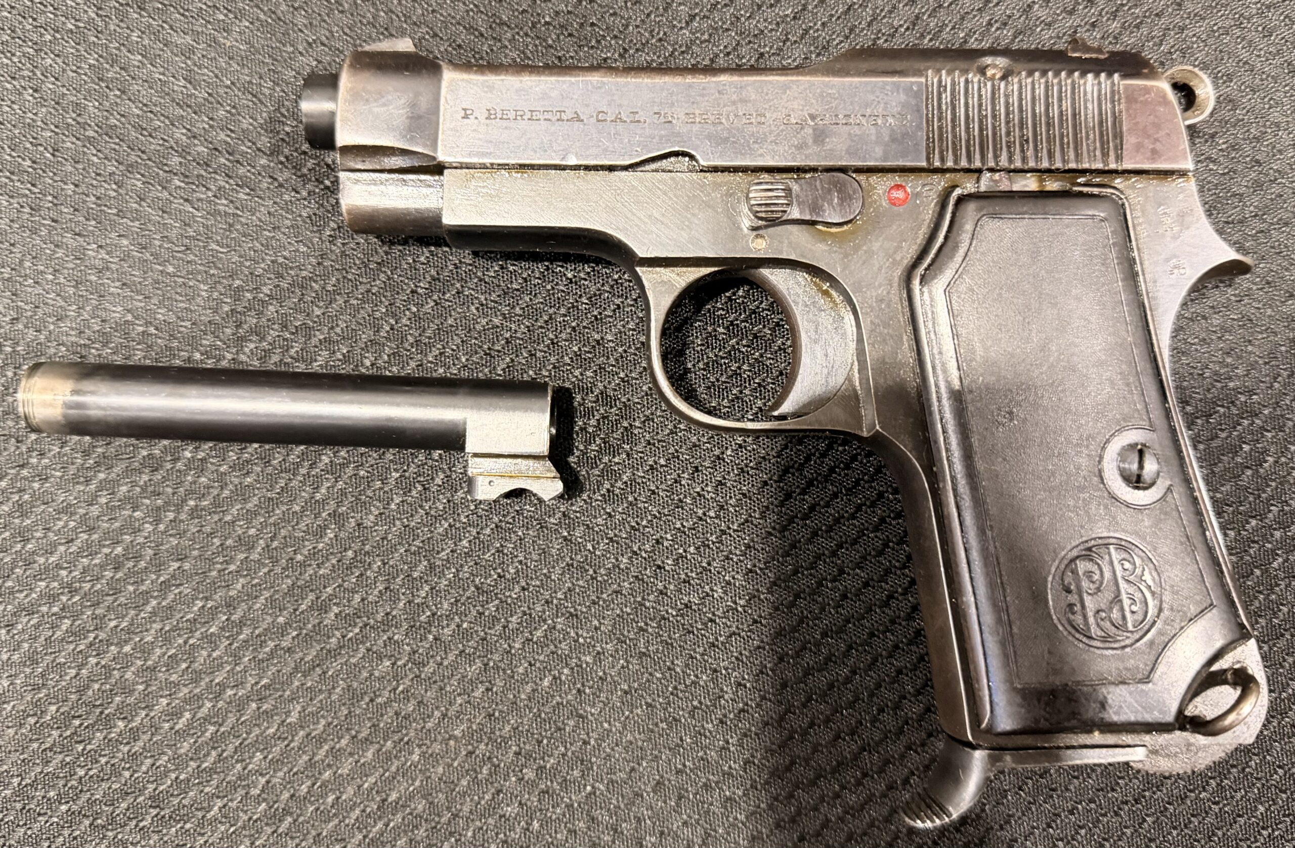 Beretta M1935 pistol chambered in .32 ACP/7.65, serial number 691357. This pistol features a new production barrel, identical to the original. It is in very good condition, with minimal surface wear. The grips are also in very good condition. The bore is brand new. The pistol is 100% functional and comes with one magazine. It is eligible for purchase by C&R holders, as it retains its original configuration.