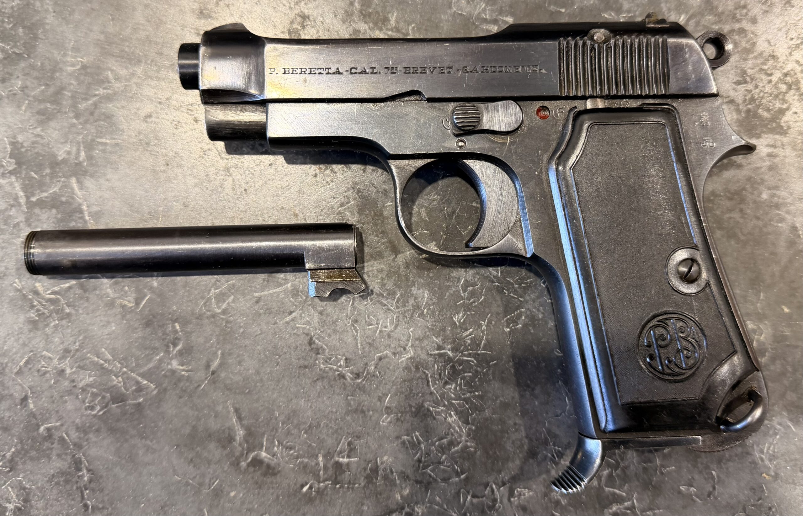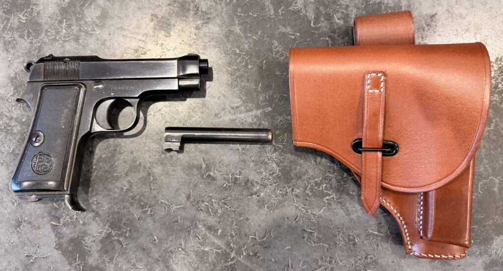 Be the first to review “Beretta M1935 pistol with new barrel, .32 ACP/7.65, serial number 710285 with leather holster and matching threaded barrel (FREE SHIPPING)”
