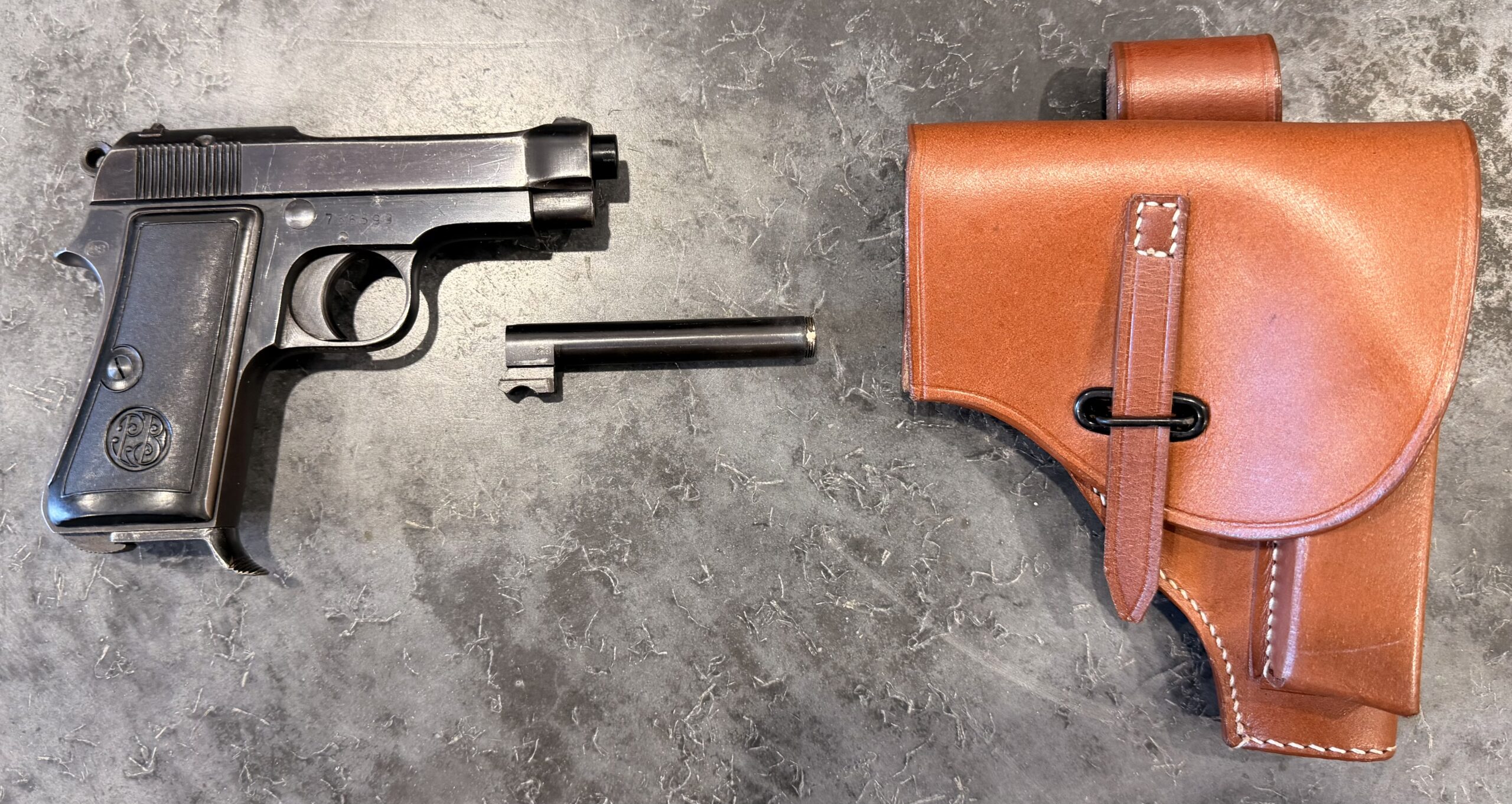 Beretta M1935 pistol with new barrel, .32 ACP/7.65, serial number 736599 with leather holster and extra threaded barrel (FREE SHIPPING)