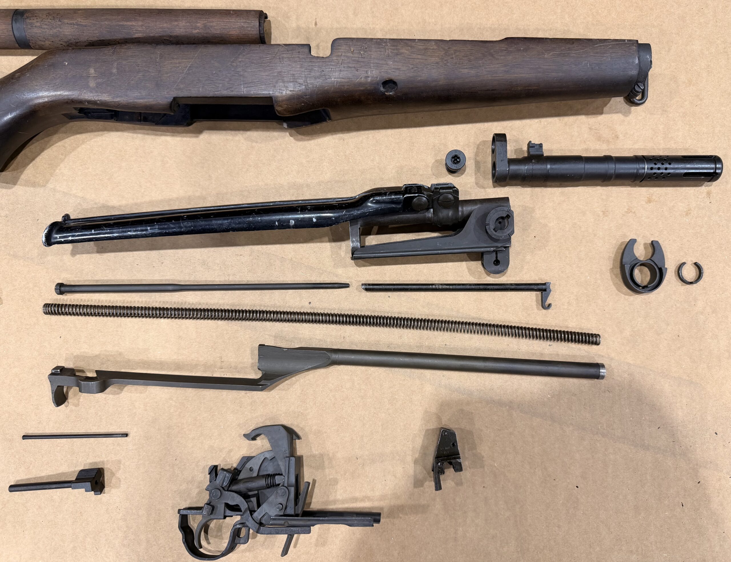 This is the exact parts kit you will receive. It is mostly complete, except for the receiver, barrel, and bolt release button spring. It has a standard stock. All parts are in very good to excellent condition. The bolt is in original packaging.