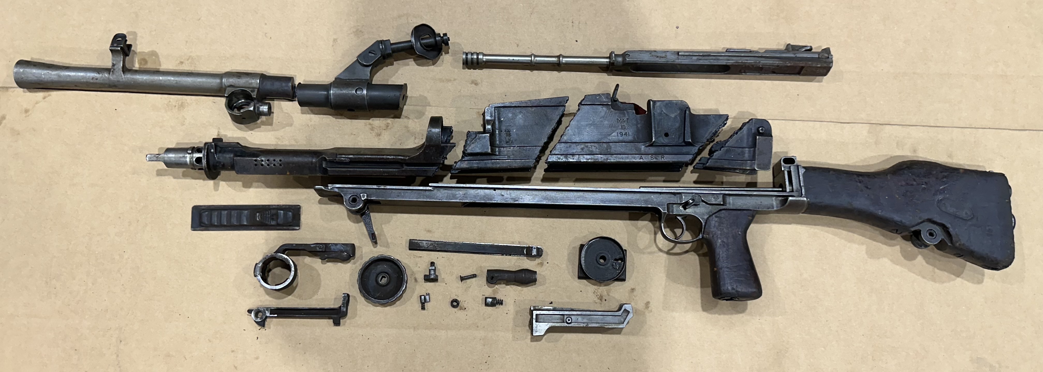 Original British BREN MK1 Parts Kits in Cal .303 British available now. These parts kits came out from Ethiopia with our most recent shipment. The kits are in fair to good condition. The metal condition is generally fair to good with some surface wear and some pitting in some small spots. The wood condition is generally fair, but may have some cracks and/or large  chunks missing from the buttstock, carry handle and pistol grip. The bipod is NOT included. The buttplate may be missing. May be missing a small metal part such as the disassembly lever. We offer a hand select fee on these kits for overall condition.  The pistol grip may be missing, Hand Select kits come with pistol grip.  Torch cut receiver sections are included. Comes with 2 cut barrel sections. The cut barrel sections may be from a Mk 1 or a Mk 2 BREN.  Some kits may come with a MKII or MKIII lower receiver, although the vast majority have a MK1 lower receiver..