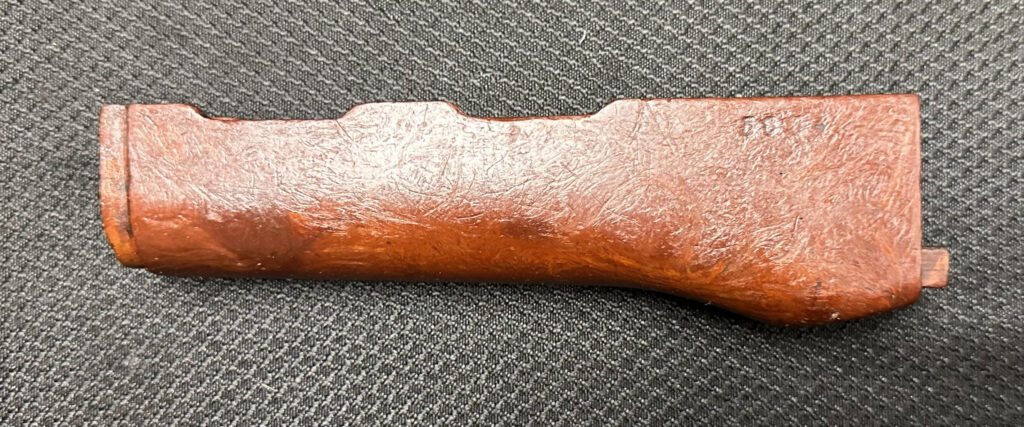 We have for sale 1 Bulgarian bakelite lower handguard for the milled receiver Bulgarian AK47, serial number 5004. This lower handguard is in fair to good condition.