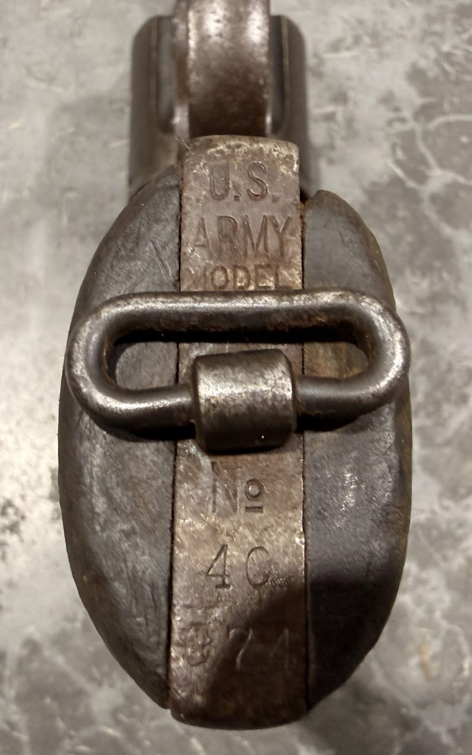 The metal finish is fair to good, showing handling wear as seen in the photos above. Please note that there is a small chip in the left grip. Please review all markings carefully in the provided photos.