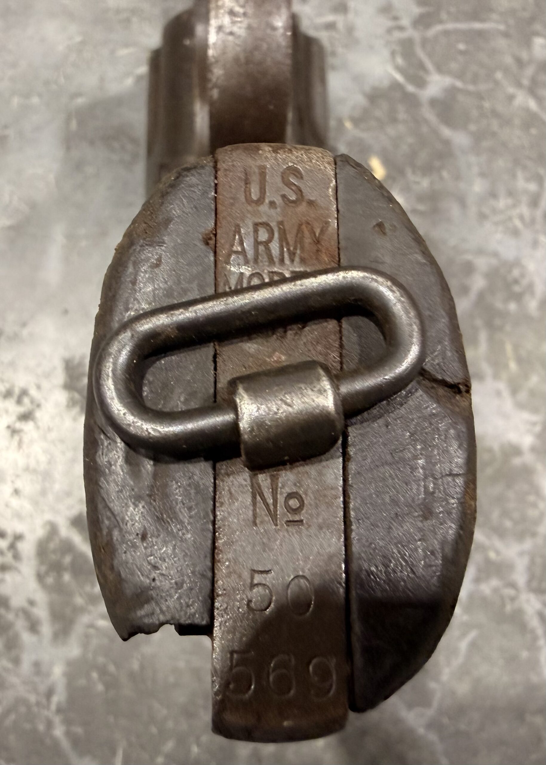 The metal finish is fair, showing handling wear as seen in the photos above. Please note that there is a crack in the right grip. Please review all markings carefully in the provided photos.
