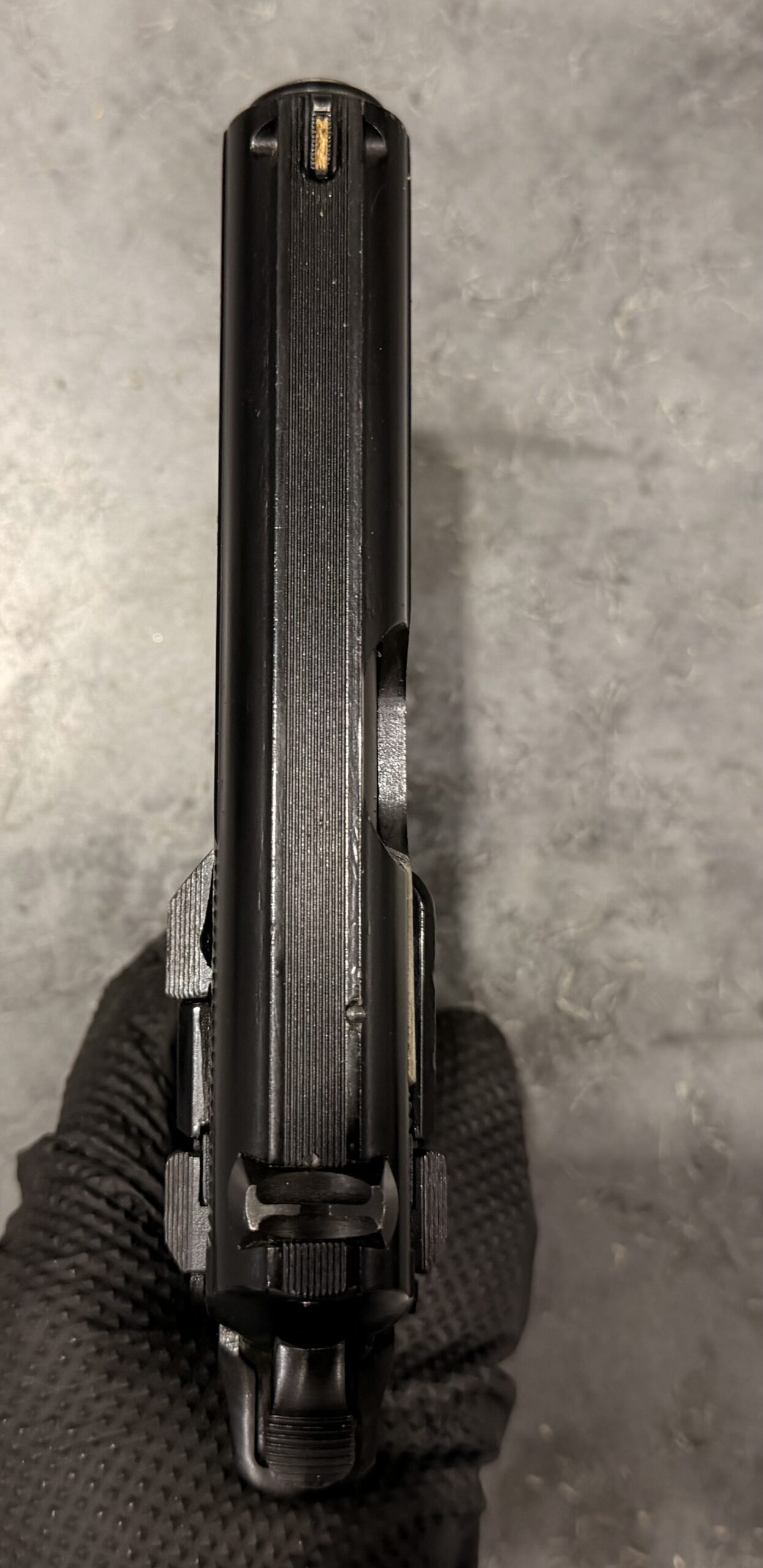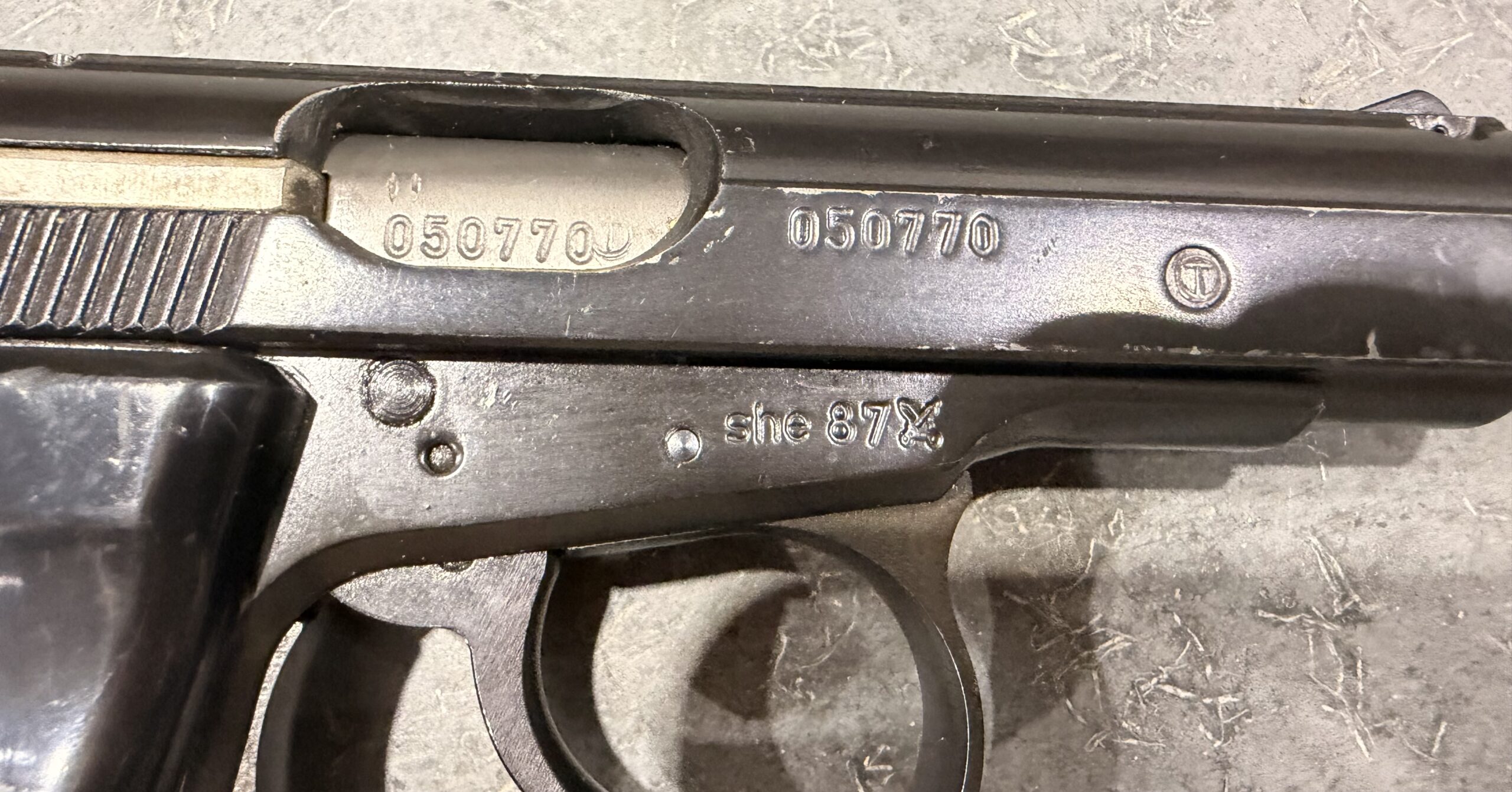 This pistol is in very good condition. The bore is in very good to excellent condition. The frame and slide are matching numbers.