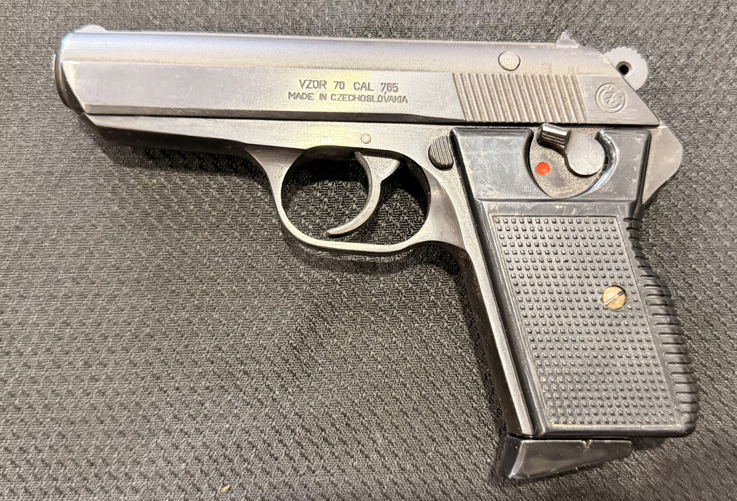 Czech VZ70/CZ70 pistol chambered in .32 ACP, serial number 663689. This pistol is in excellent condition. The grips are also in very good condition with no cracks. The bore is excellent with strong grooves. The pistol is numbers matching frame and slide. The pistol is 100% functional and comes with two magazines. The pistol is import marked on the rear strap underneath the hammer on the frame.