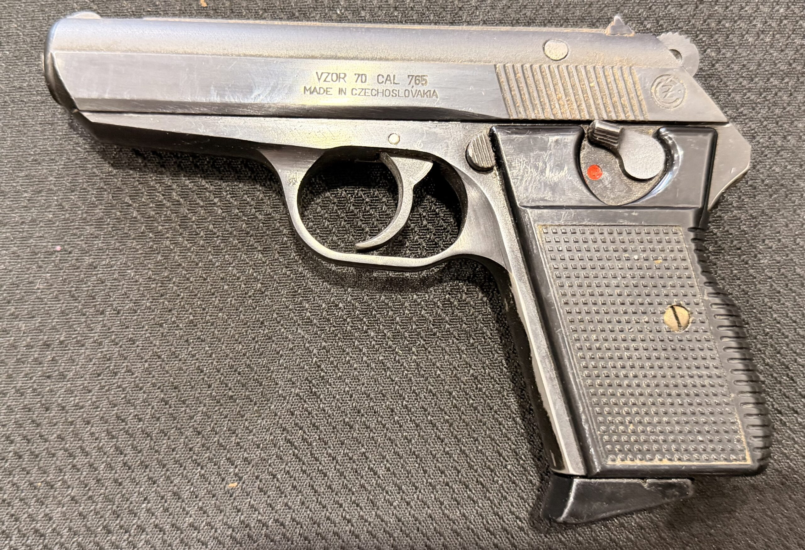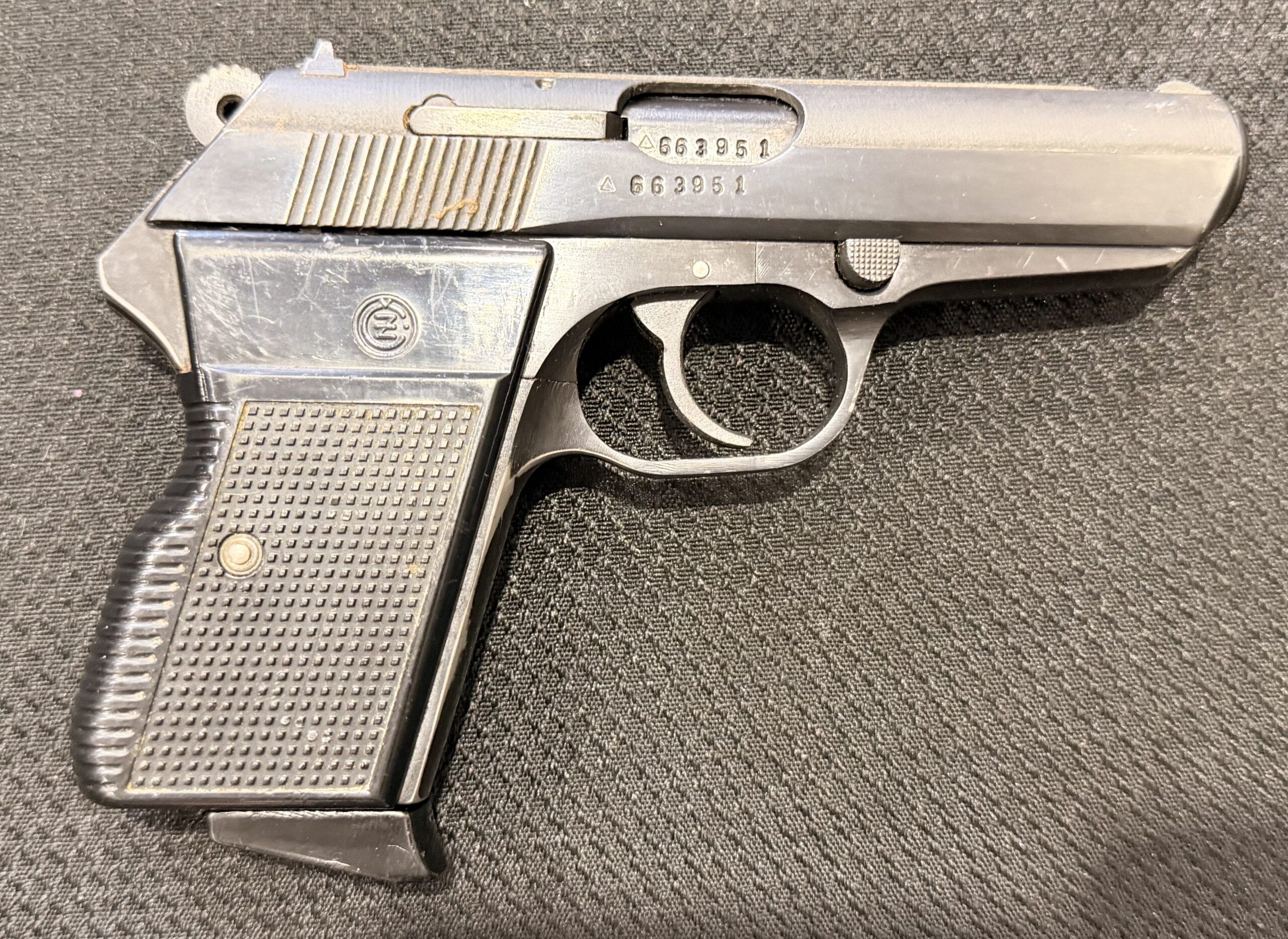 Czech VZ70/CZ70 pistol chambered in .32 ACP, serial number 663951. This pistol is in excellent condition. The grips are also in very good condition with no cracks. The bore is excellent with strong grooves. The pistol is numbers matching frame and slide. The pistol is 100% functional and comes with two magazines. The pistol is import marked on the rear strap underneath the hammer on the frame.