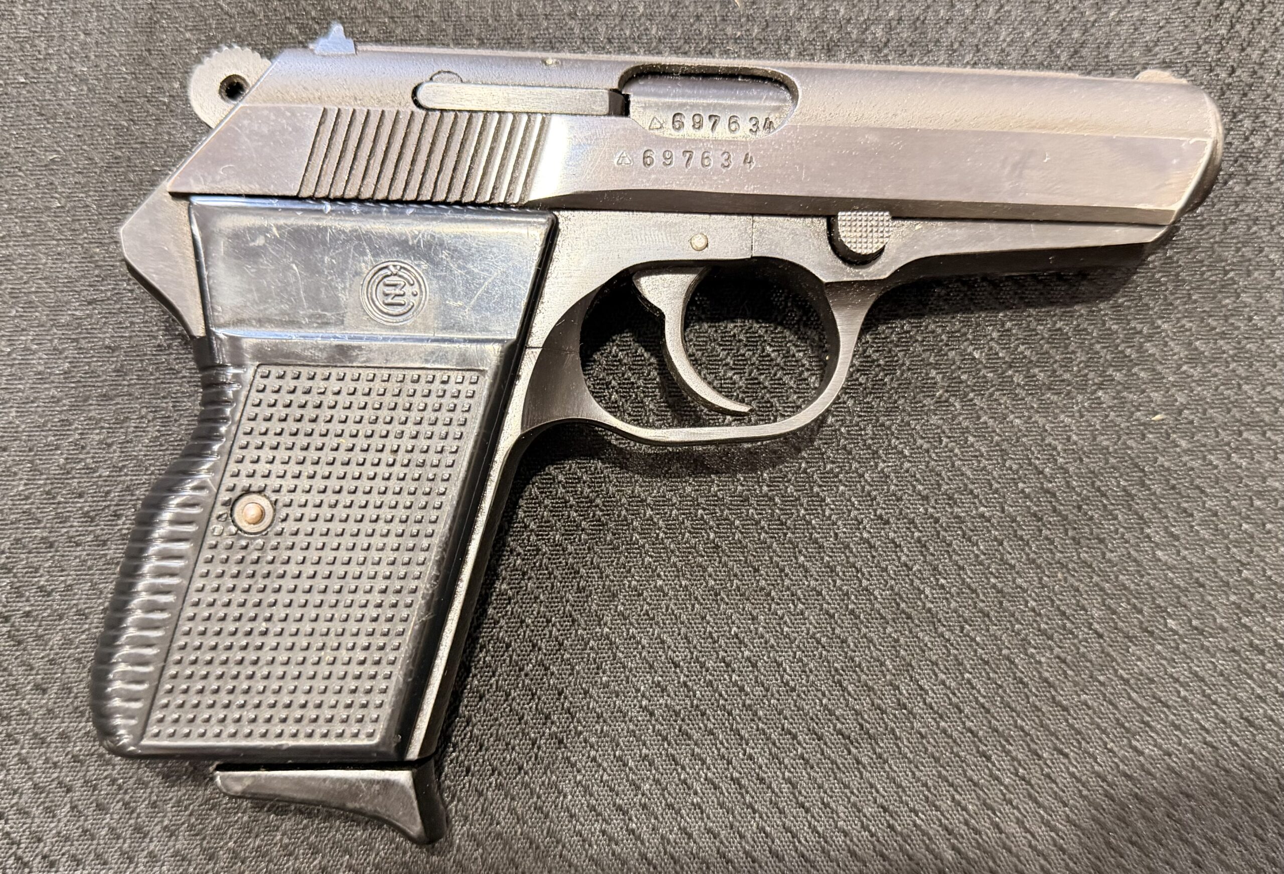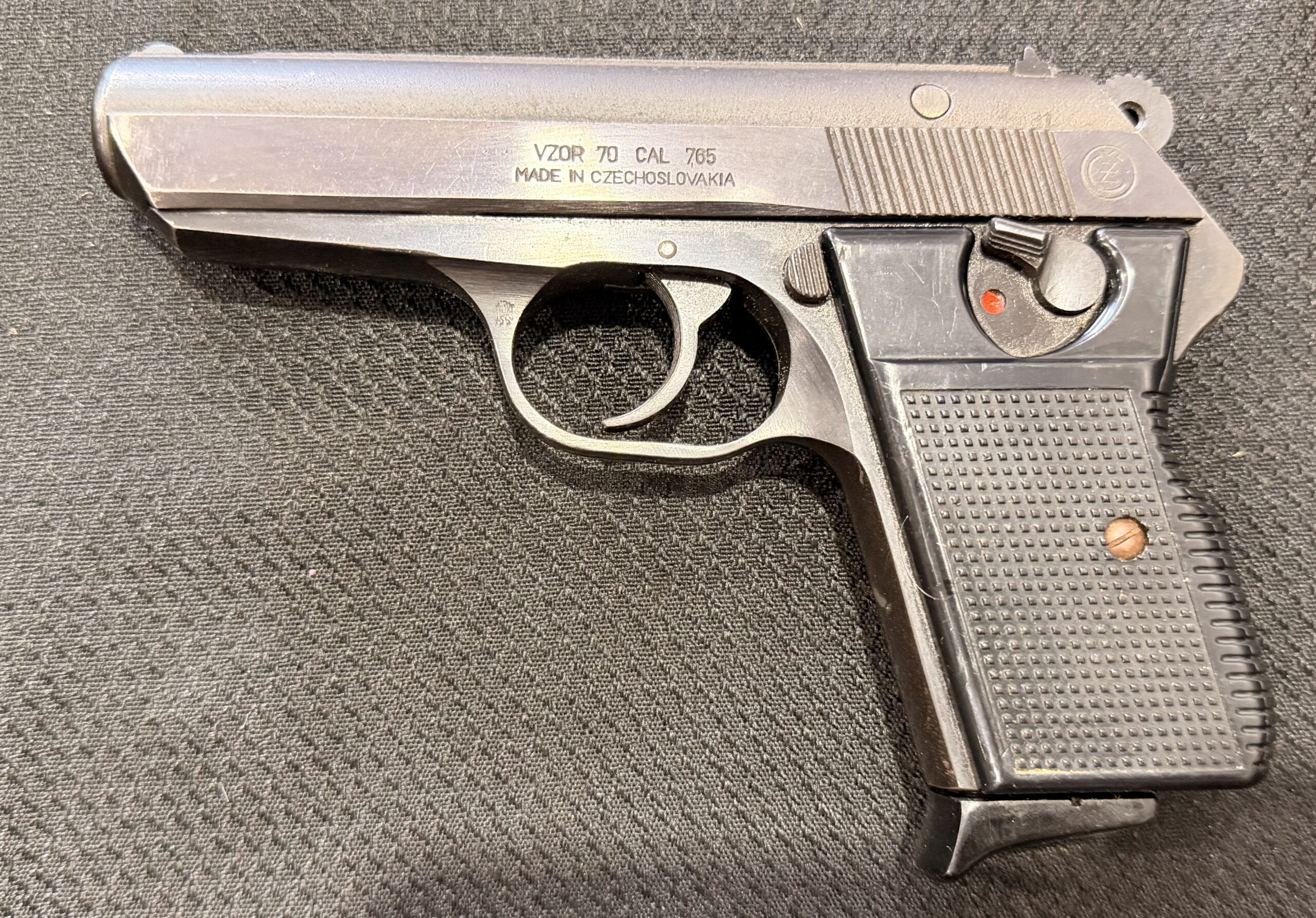 Czech VZ70/CZ70 pistol chambered in .32 ACP, serial number 697634. This pistol is in excellent condition. The grips are also in very good condition with no cracks. The bore is excellent with strong grooves. The pistol is numbers matching frame and slide. The pistol is 100% functional and comes with two magazines. The pistol is import marked on the rear strap underneath the hammer on the frame.