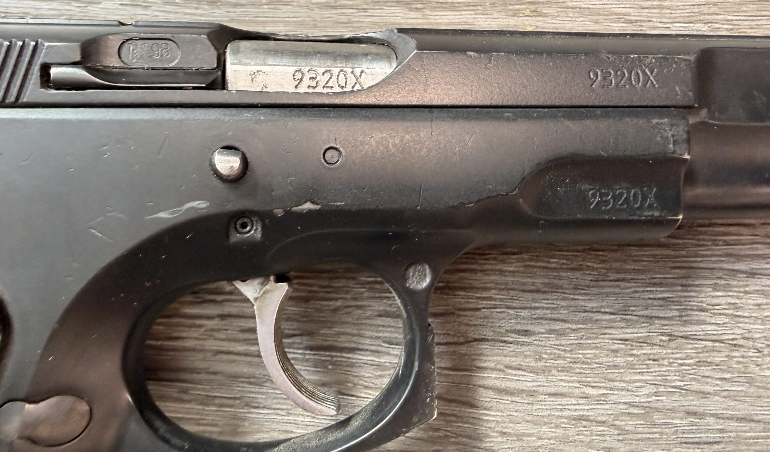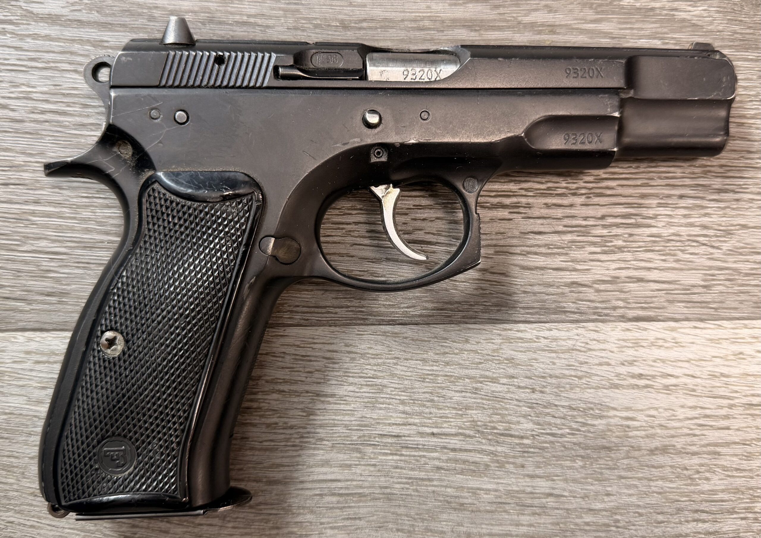Czech CZ75 BD POLICE, chambered in 9mm Luger, serial number 9320x. This pistol is in very good overall condition with minimal surface wear. The grips are clean and solid with no cracks, and the bore is in very good condition with strong, sharp rifling.