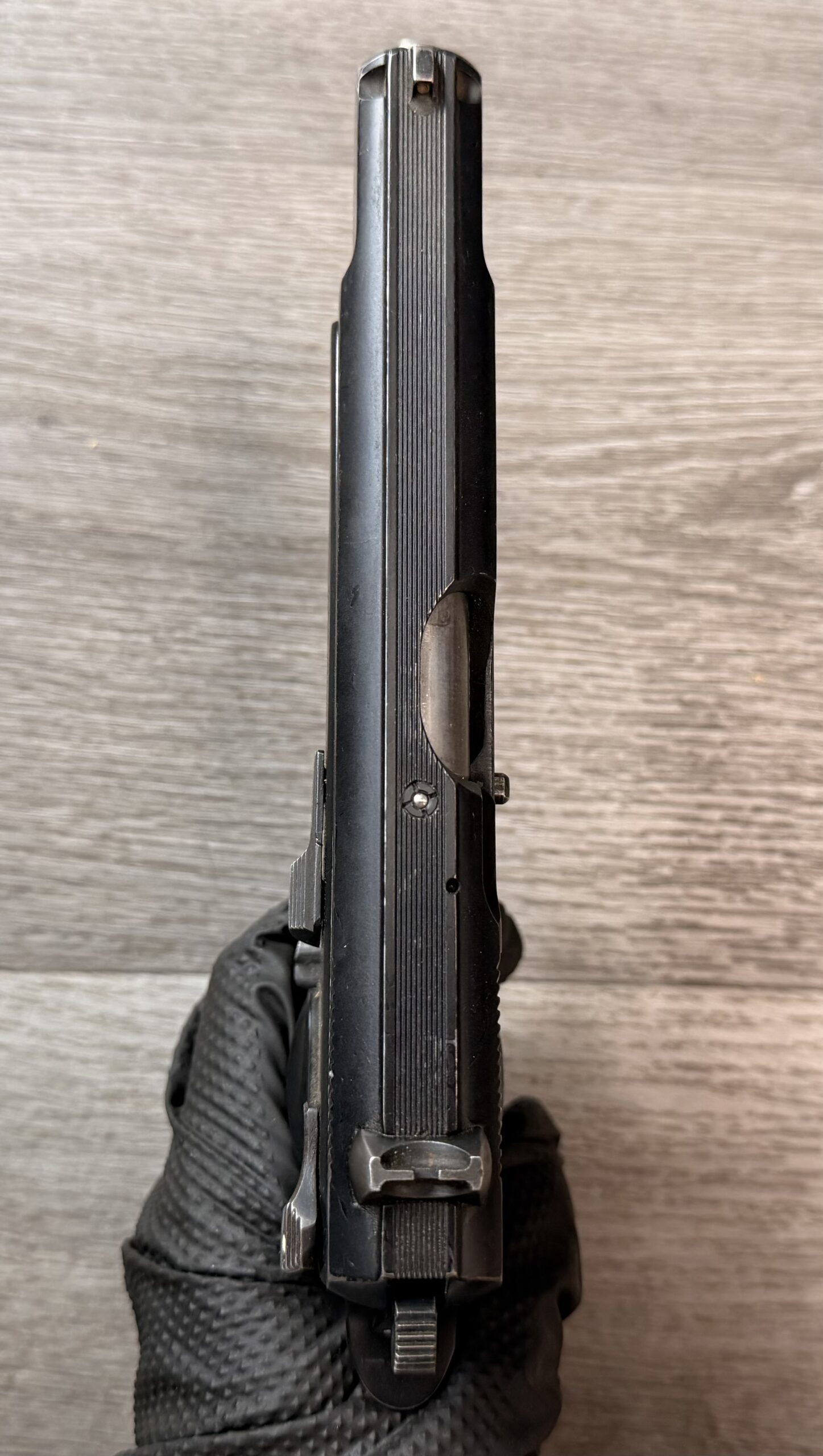 This example features matching numbers on the frame and slide and is 100% functional. The import mark is discreetly placed on the rear strap beneath the hammer.
