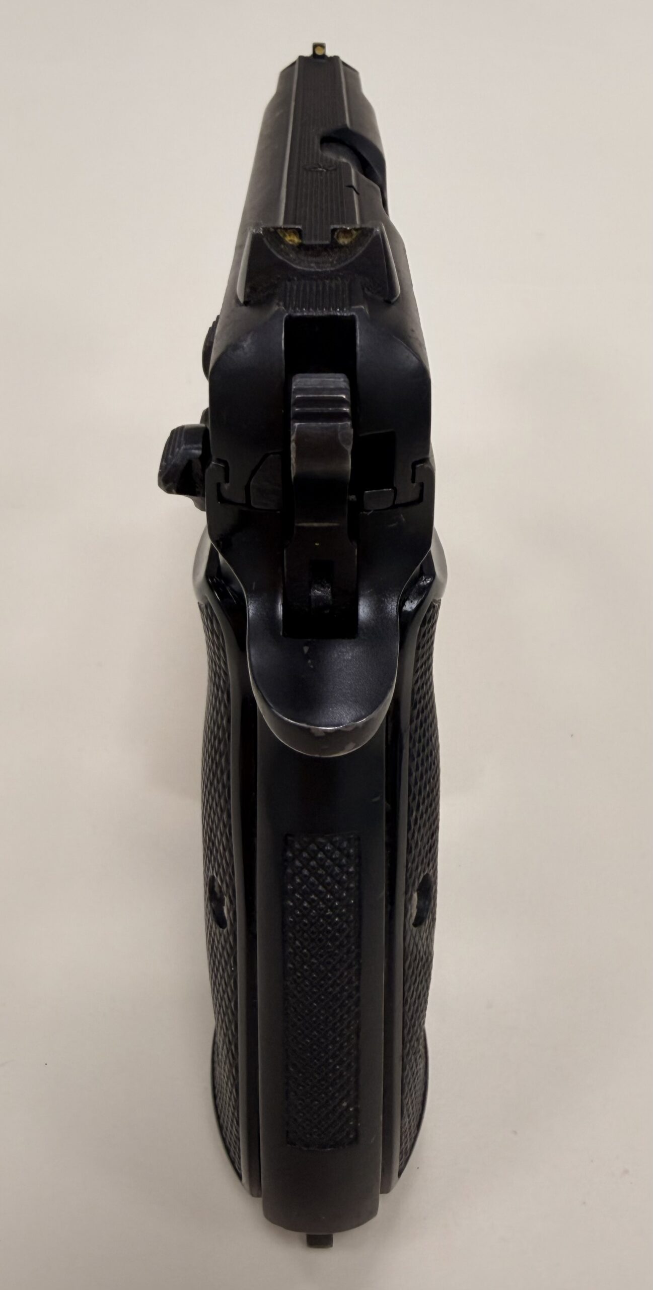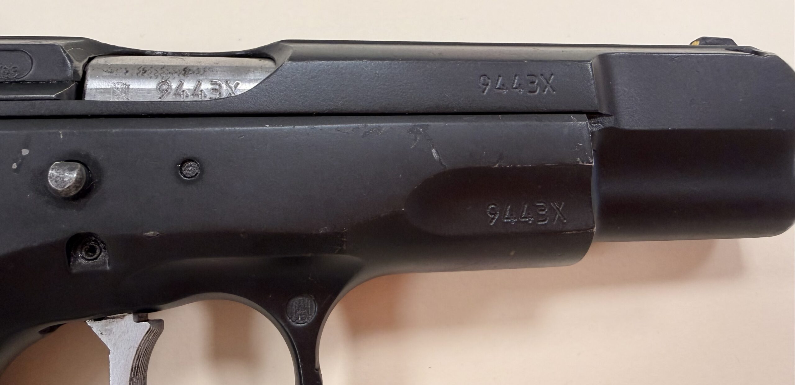 This example features matching numbers on the frame and slide and is 100% functional. The import mark is discreetly placed on the rear strap beneath the hammer.