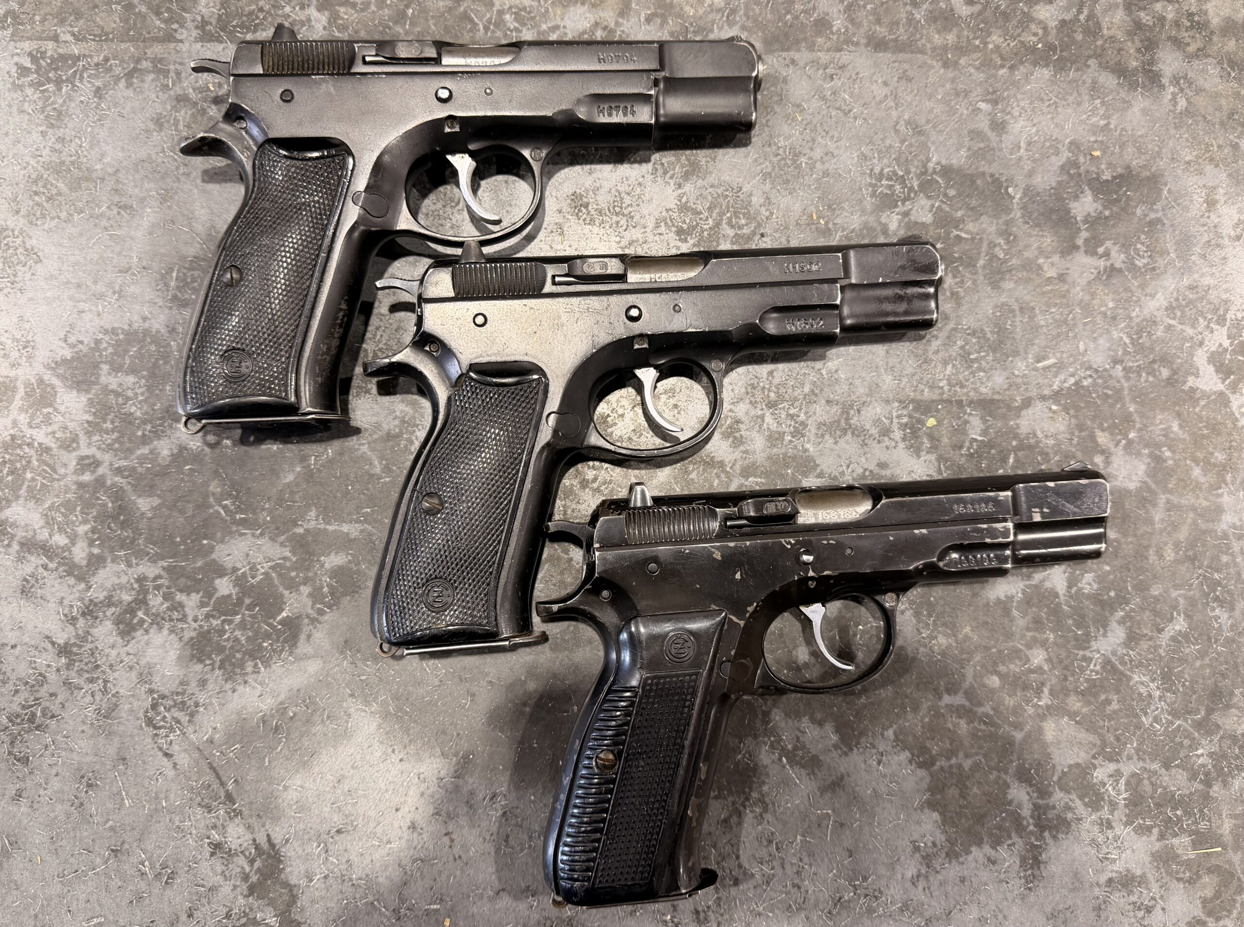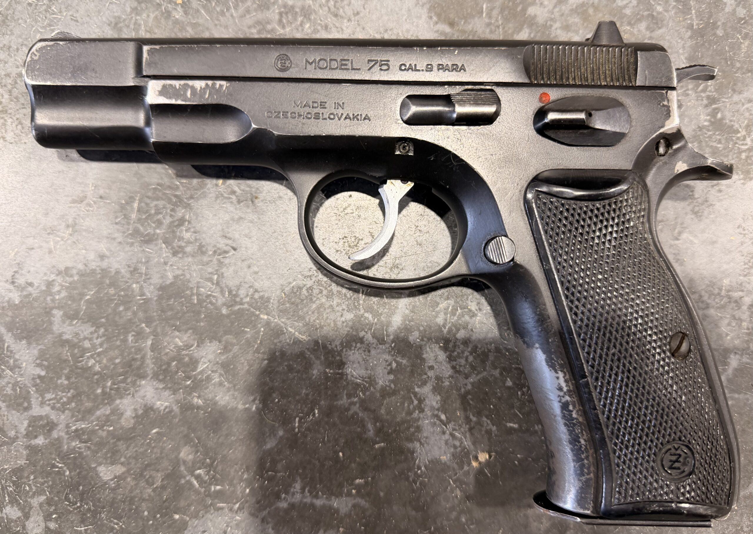 Czechoslovakian CZ75 pistols chambered in 9mm Luger (9x19mm). These pistols are in fair to good condition and are 100% functional. These pistols are generally in fair to good with some surface wear such as on the slide high spots, frame high spots near the safety, front strap and rear strap of the pistol. Much of the surface wear was from the holsters and/or general handling wear. Please see the detailed photos above for examples of the overall condition of the pistols. The grips are in fair to good condition with light wear however some may have a small crack in the grips. Bores are very good to excellent. Each pistol is 100% functional and comes with 1 magazine. Hammer style may vary (either rounded or spur type). Grip style and trigger guard style may vary. These pistols are great shooters for the price! Limited quantity available at this heavily discounted price.