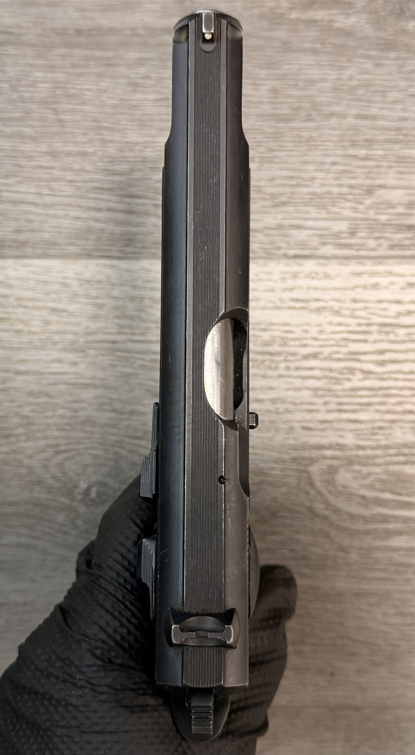 This pistol is in very good condition and is 100% functional. The bore is in excellent condition, and the grips are in very good condition.