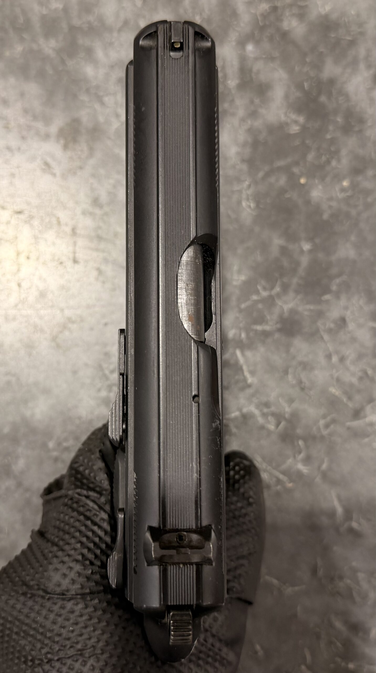 This pistol is in excellent condition and is 100% functional. The bore is in excellent condition, and the grips are in very good condition.