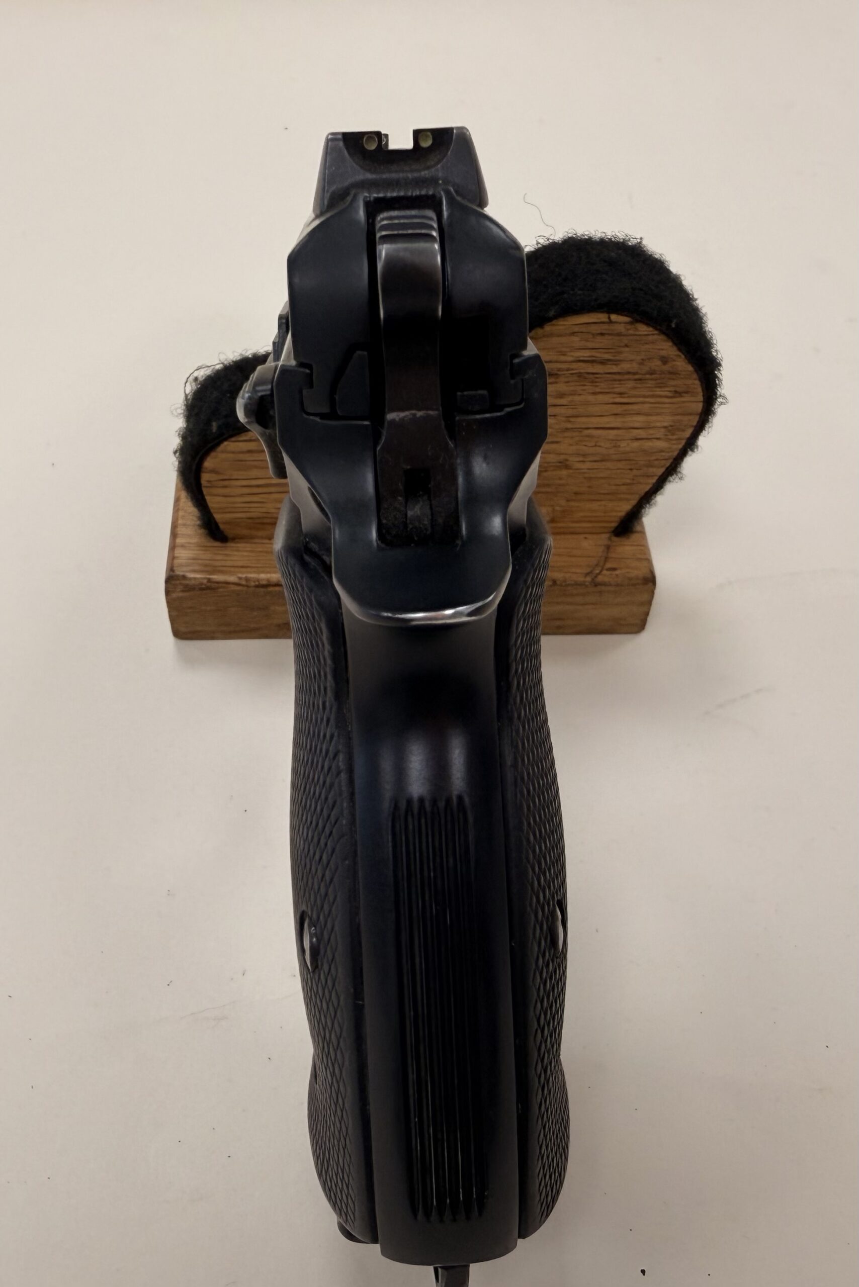 This pistol is in very good condition and is 100% functional. The bore is in good condition, and the grips are in very good condition.