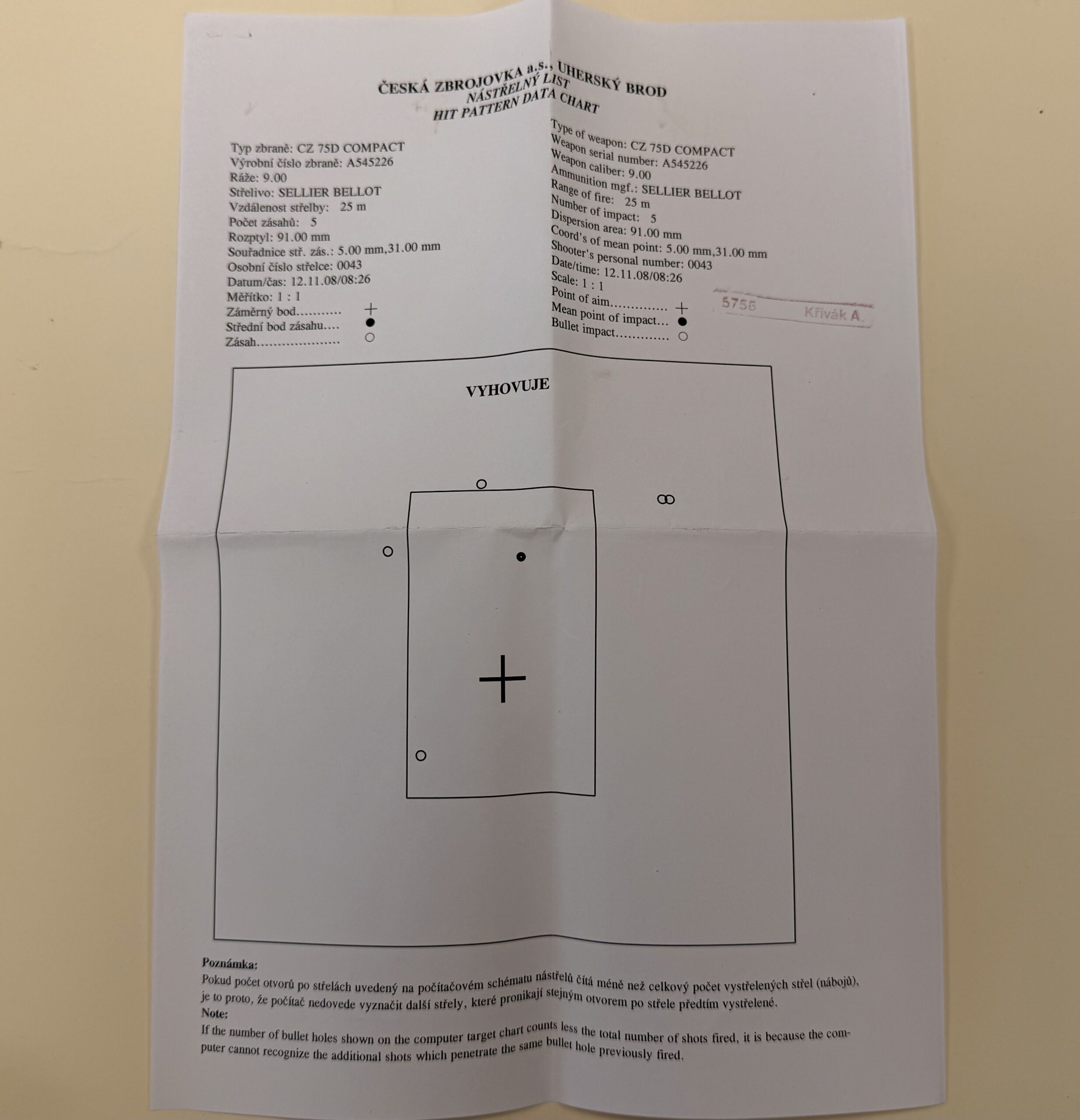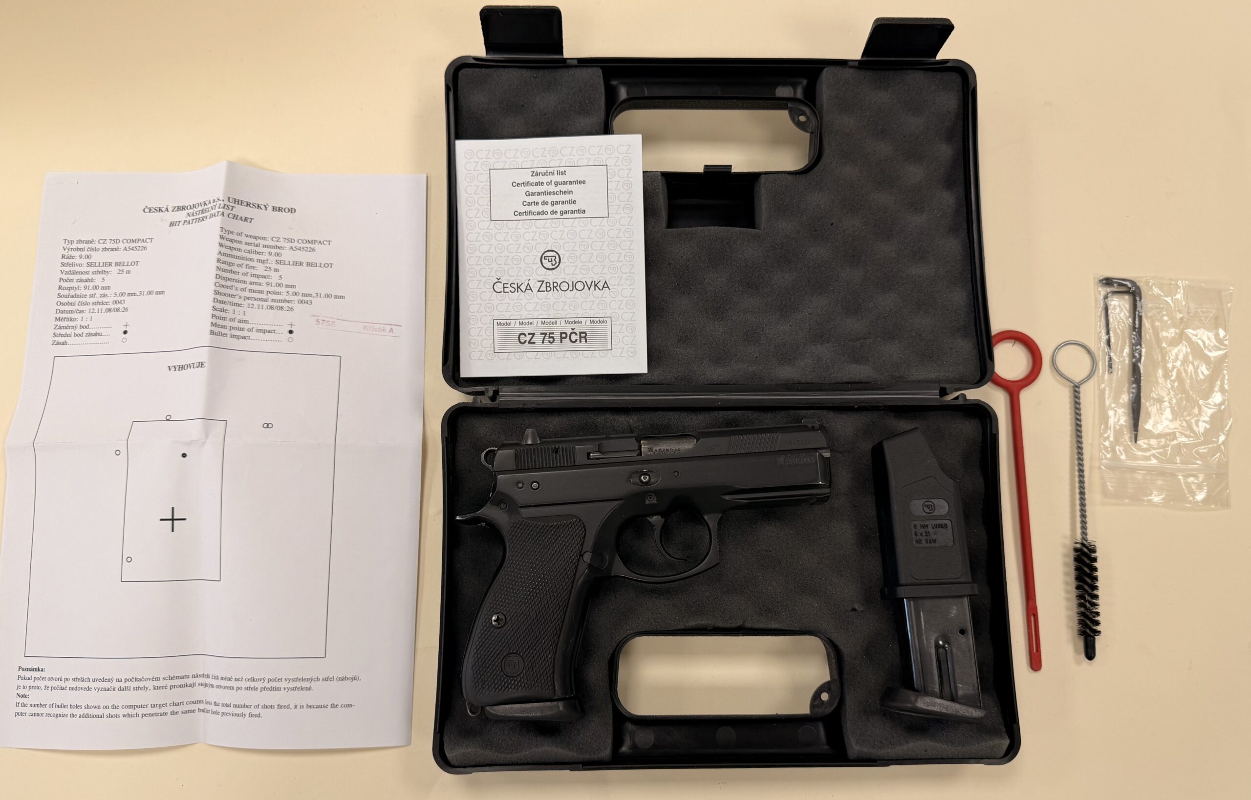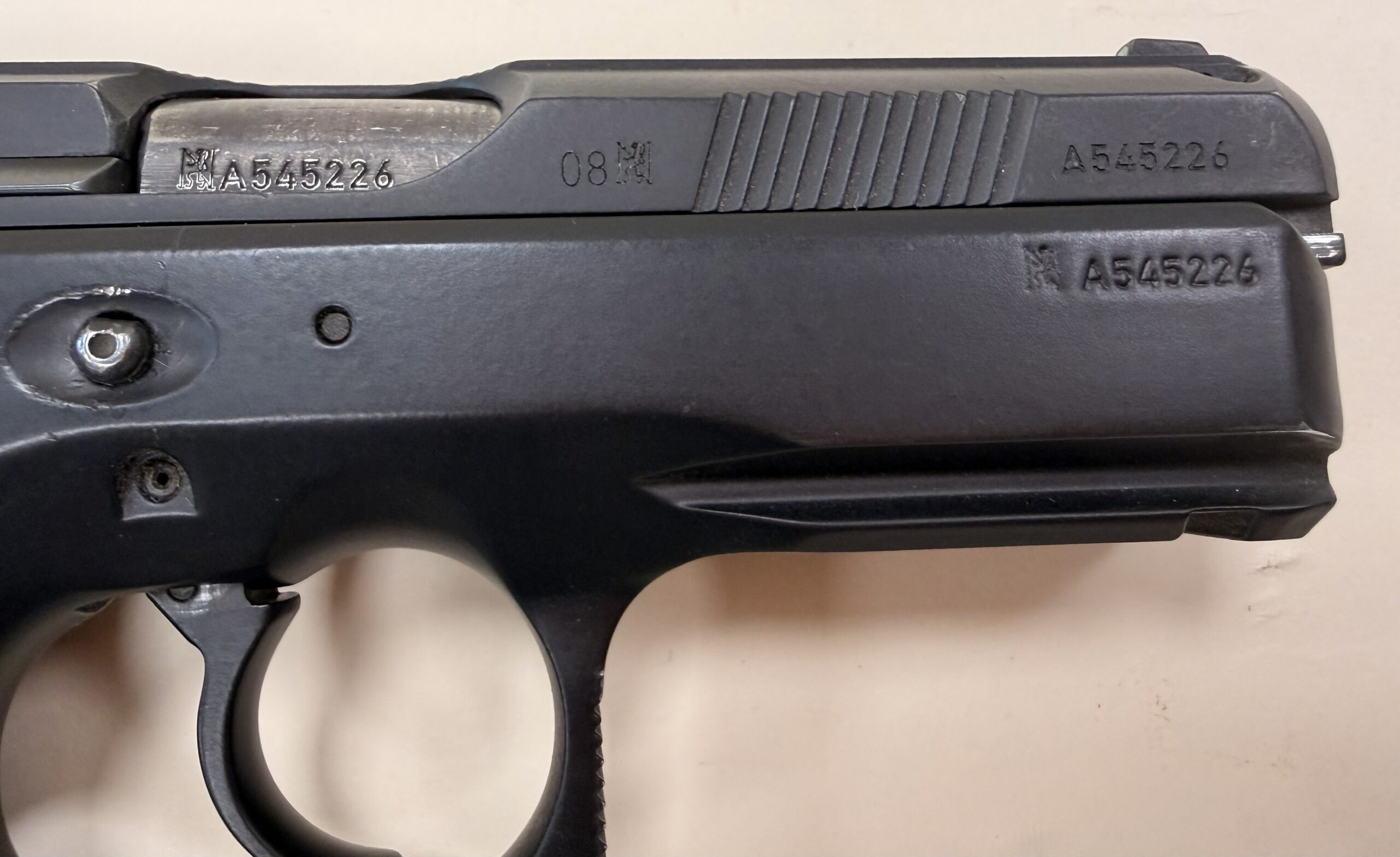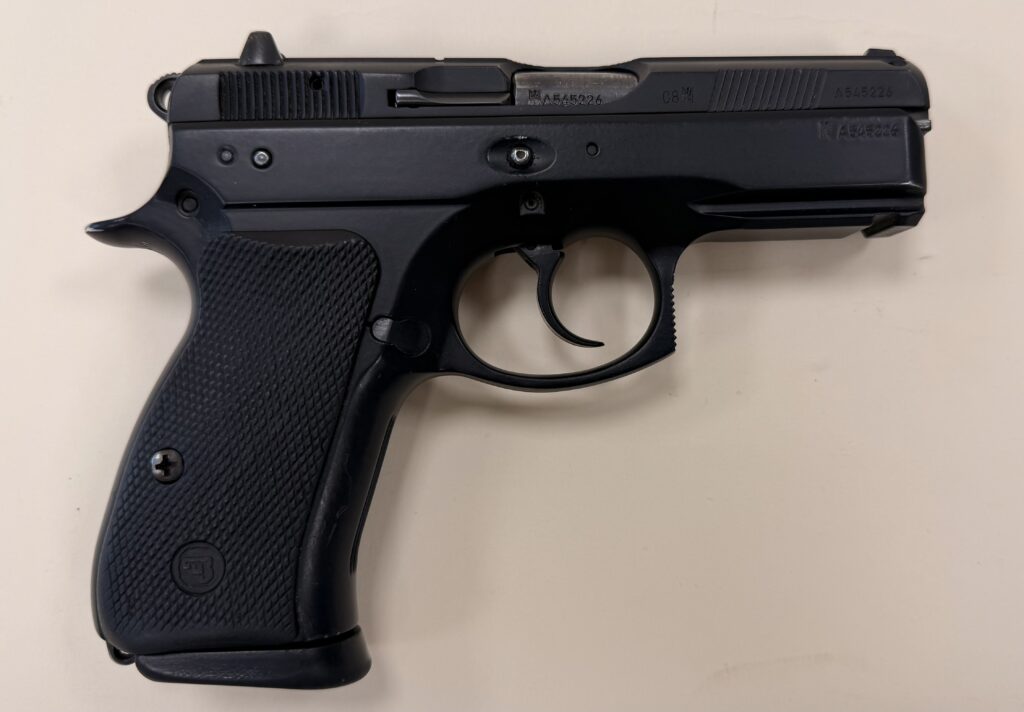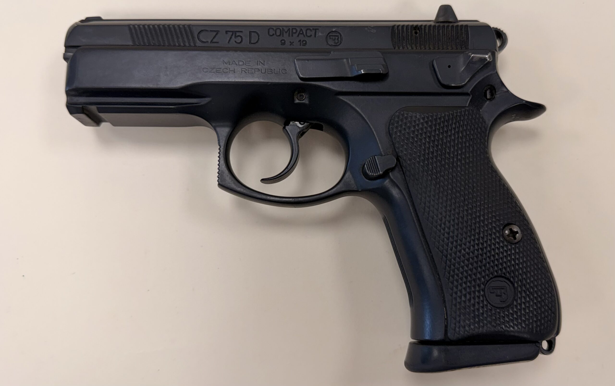 Czechoslovakian CZ75D pistol chambered in 9mm Luger (9x19mm), serial number A545226.