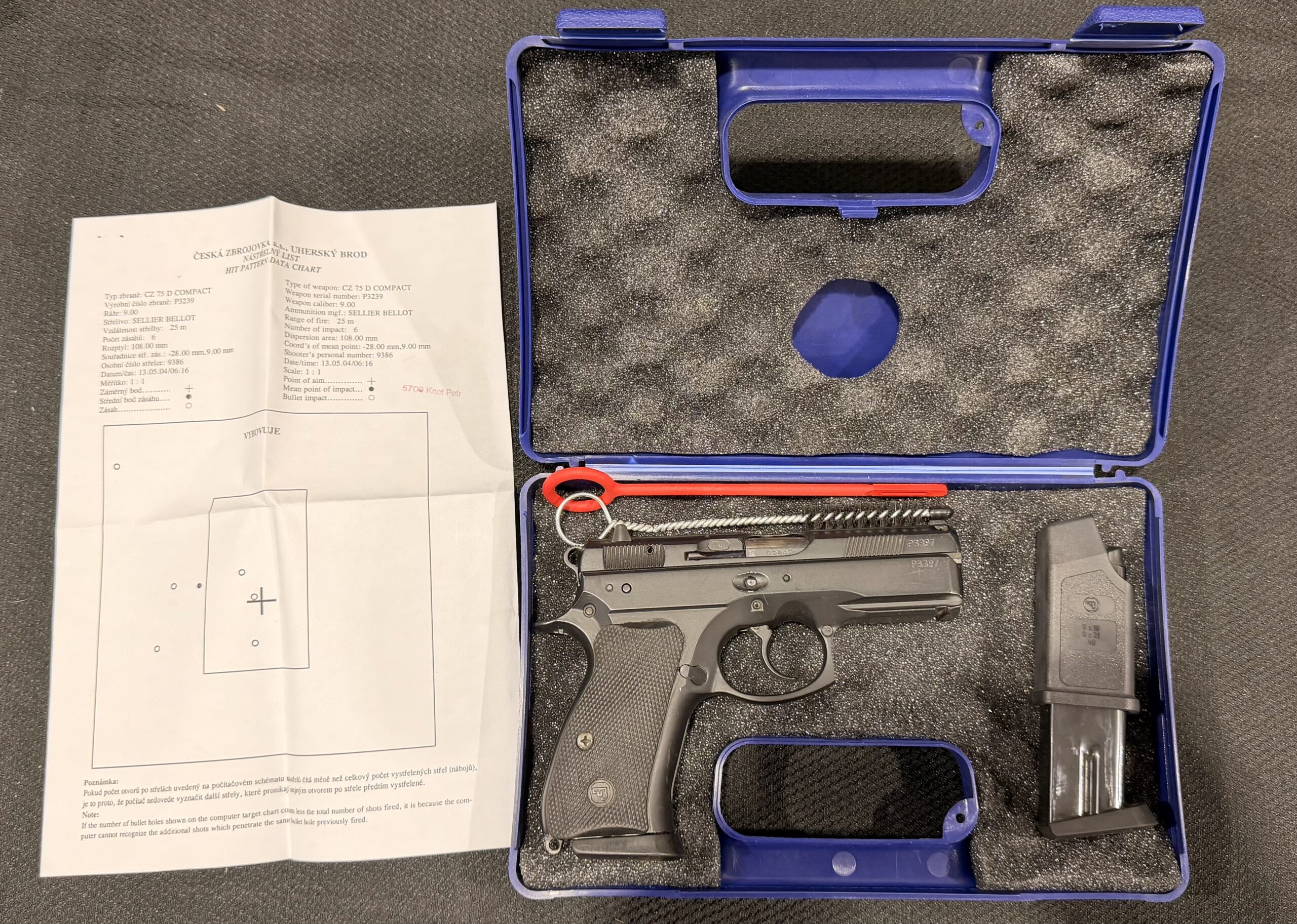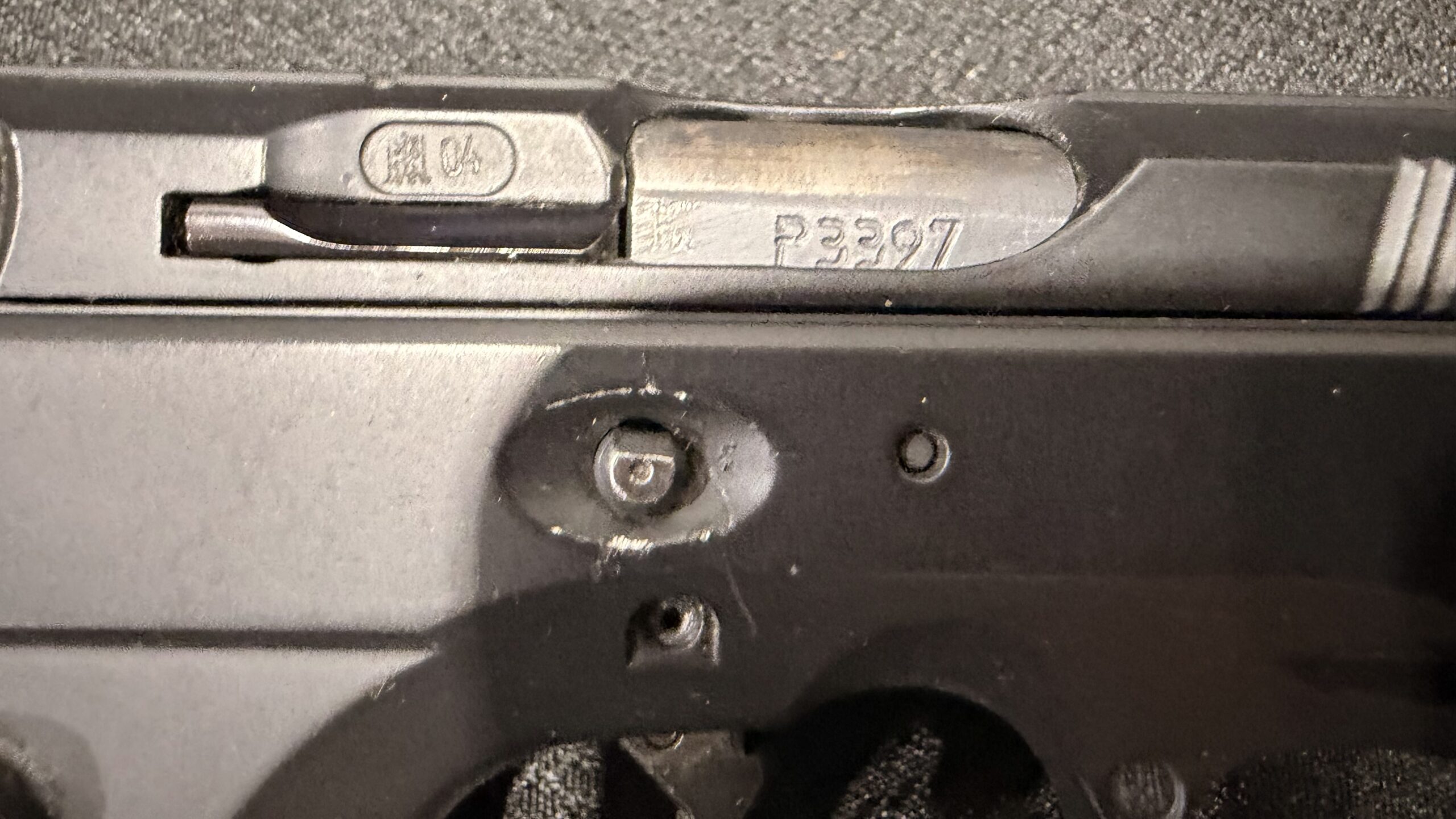 Czechoslovakian CZ75D pistol chambered in 9mm Luger (9x19mm), serial number P3397.