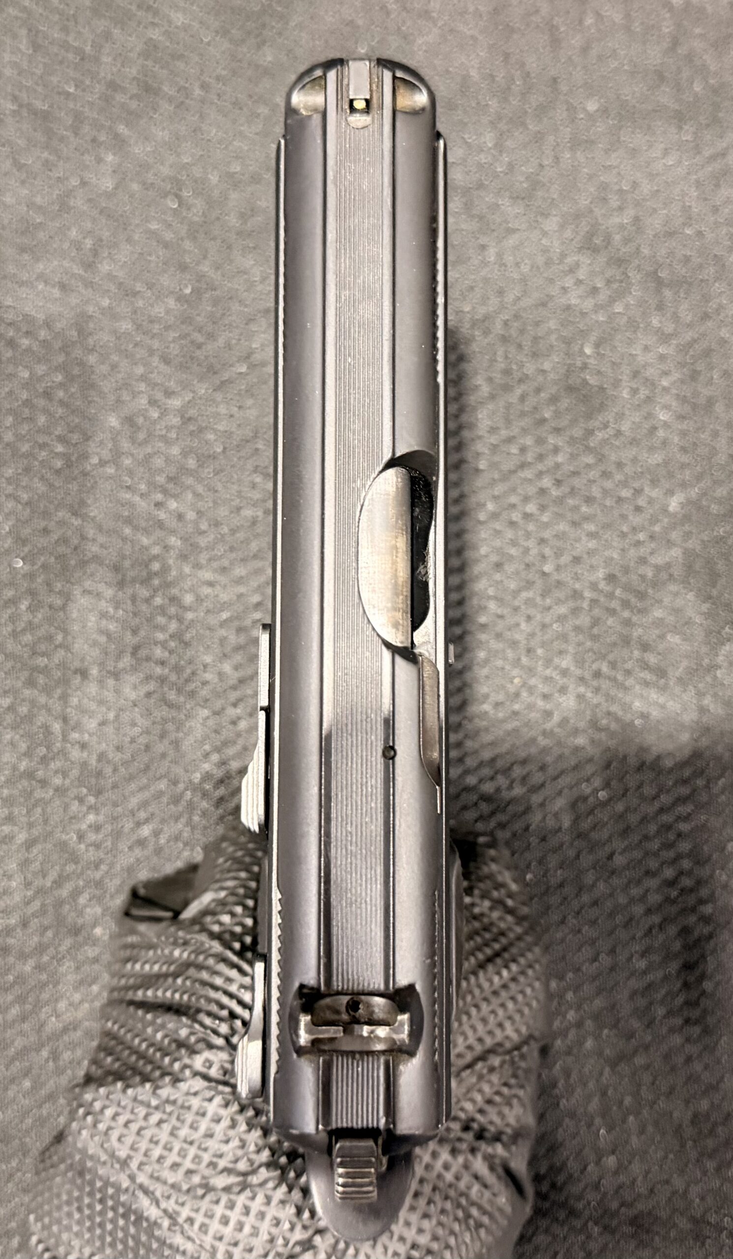 This pistol is in very good condition and is 100% functional. The bore is in excellent condition, and the grips are in very good condition.
