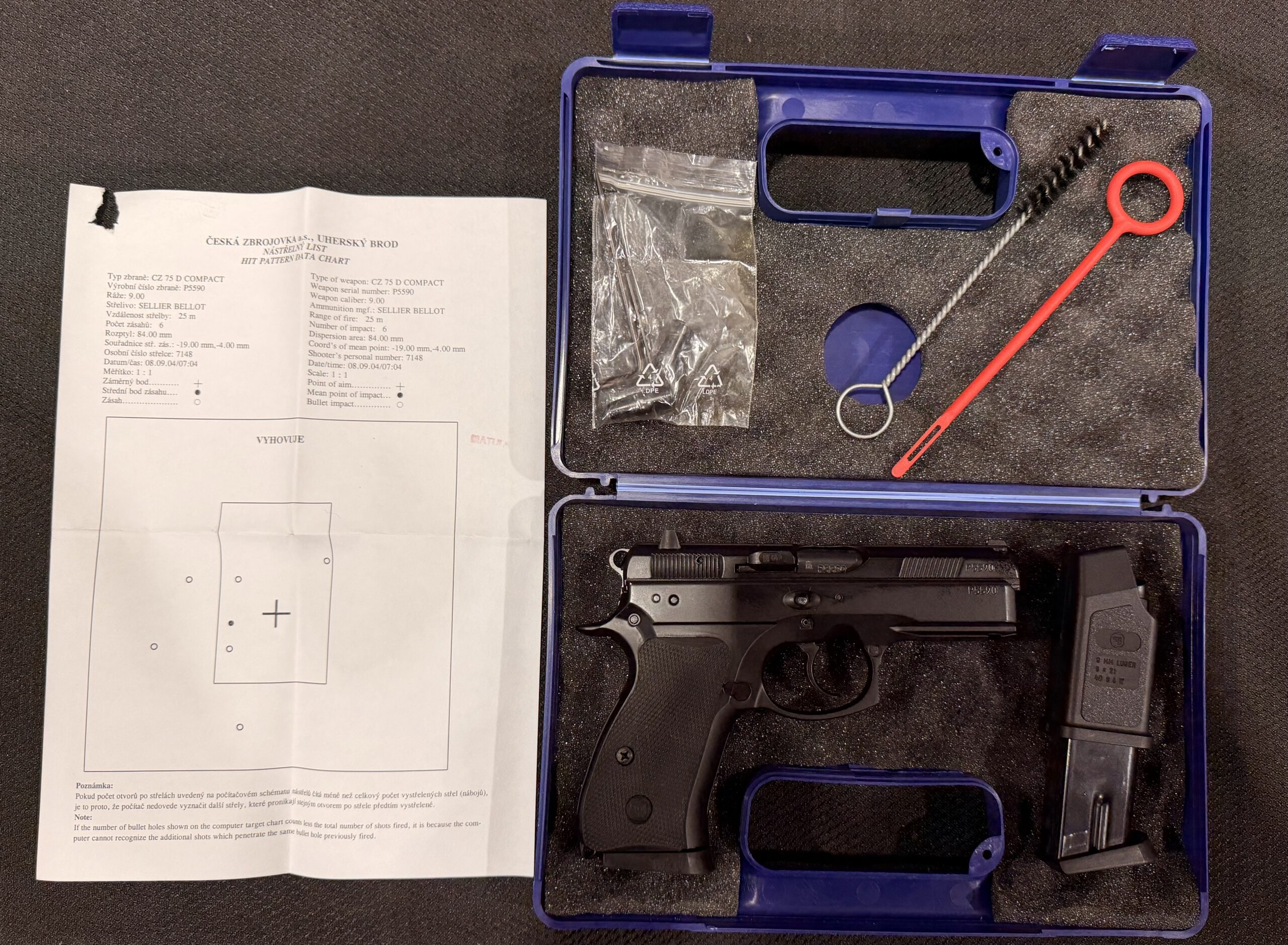 Czechoslovakian CZ75D pistol chambered in 9mm Luger (9x19mm), serial number P5590.