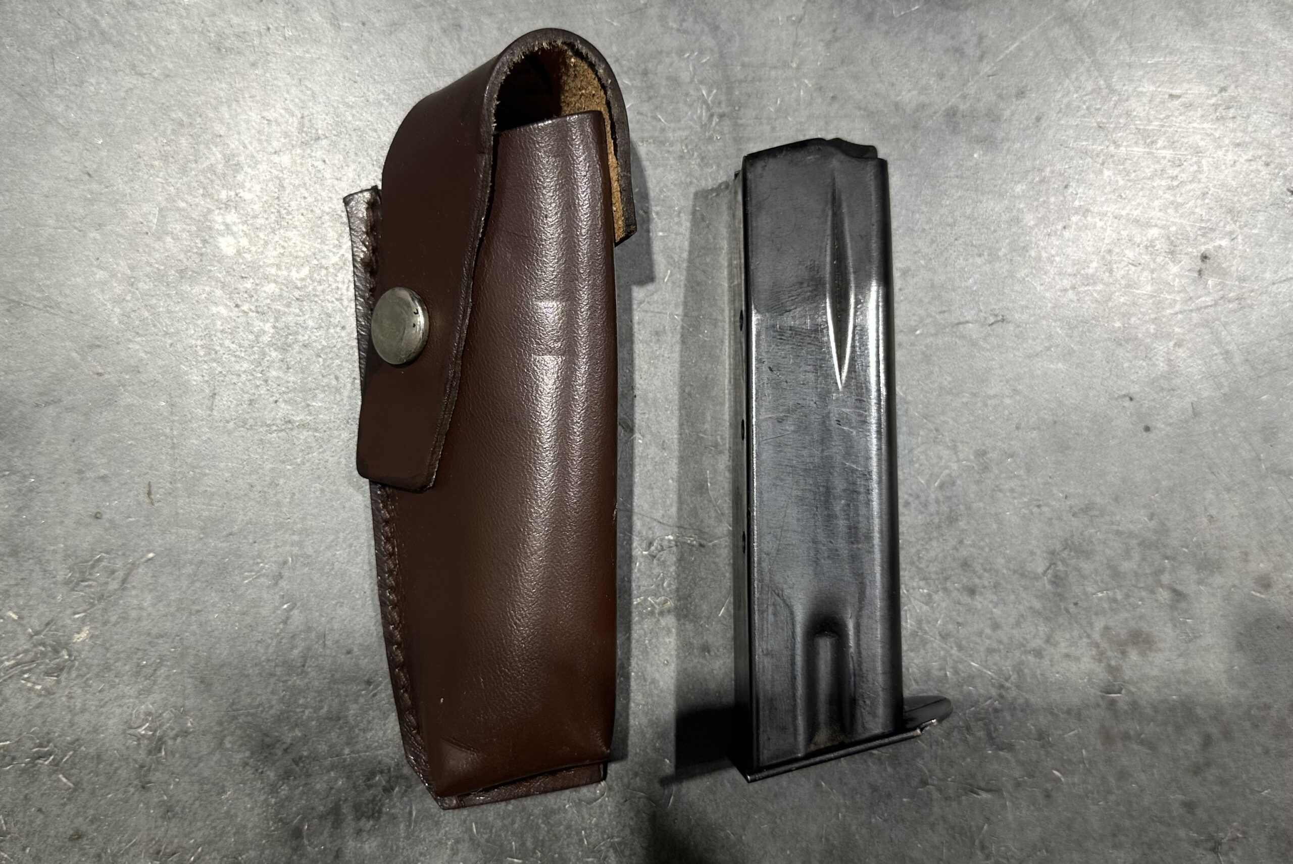 These 12-round magazines are in good to very good condition and are 100% functional. Please note that some magazines may show small spots of light rust, which can be cleaned off easily; however, most are rust-free. Each comes with an original leather magazine pouch.