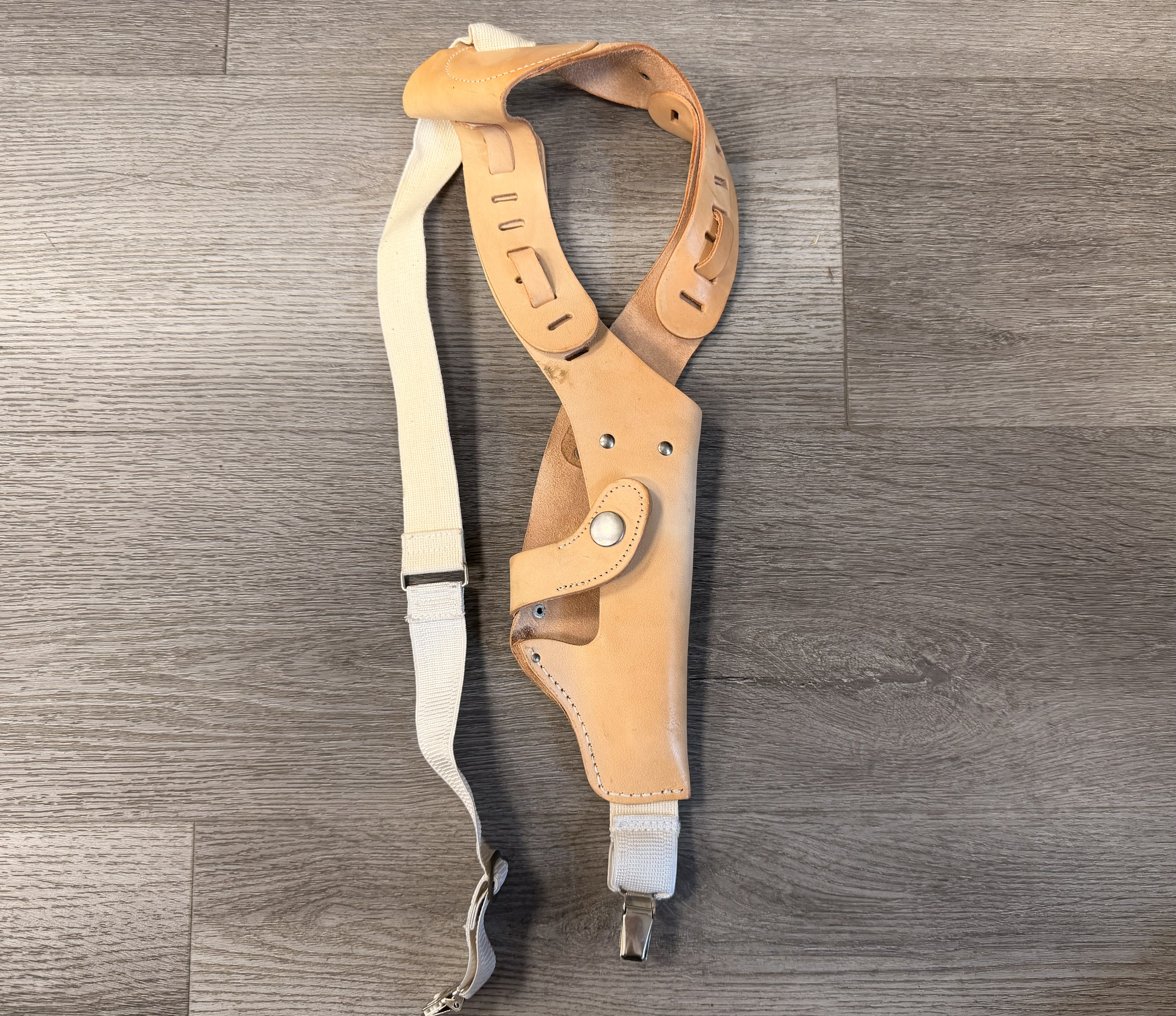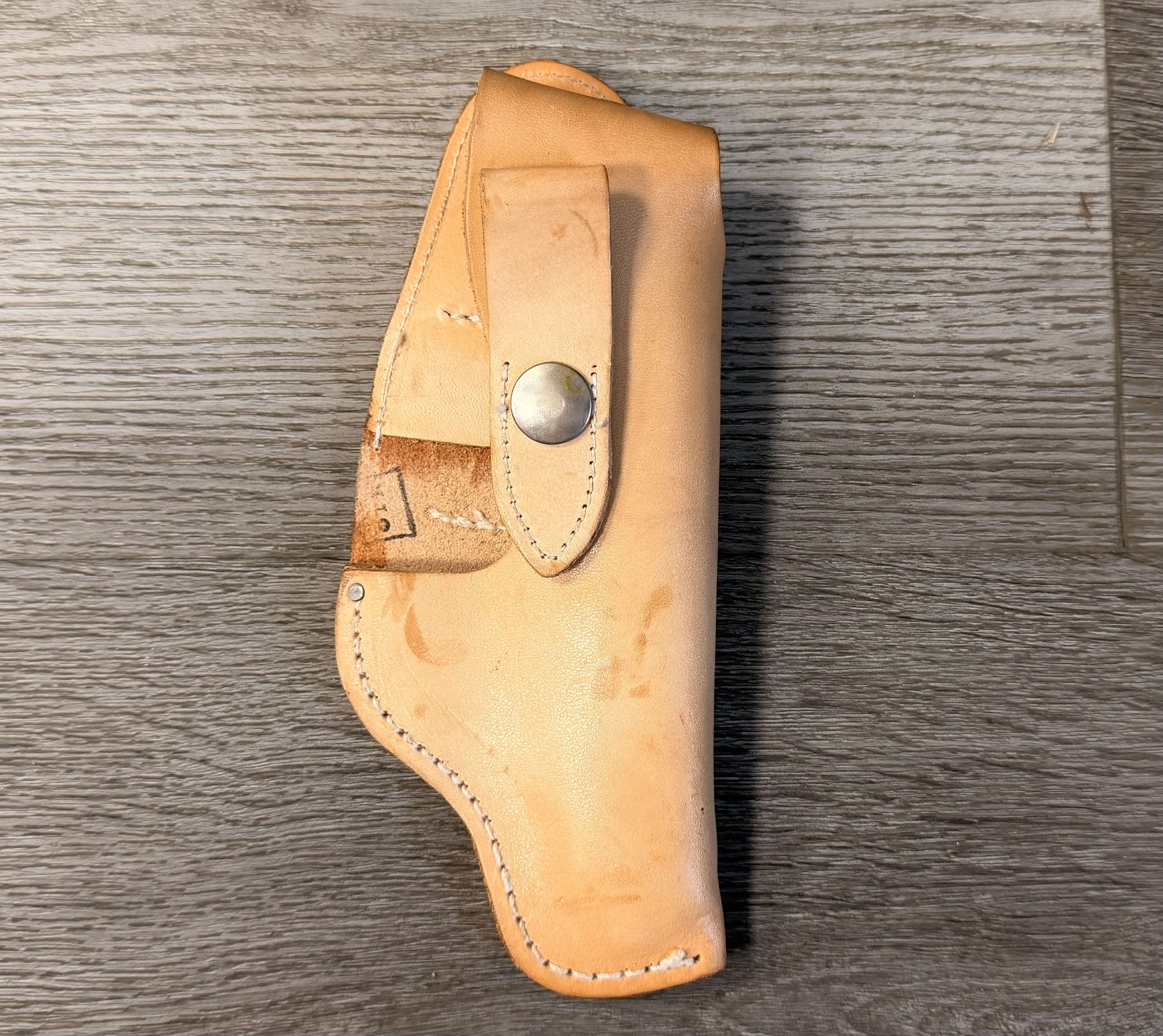 Comes with a package of one 12rd magazine, a leather mag pouch, cleaning rod and a holster (may be belt or shoulder style).