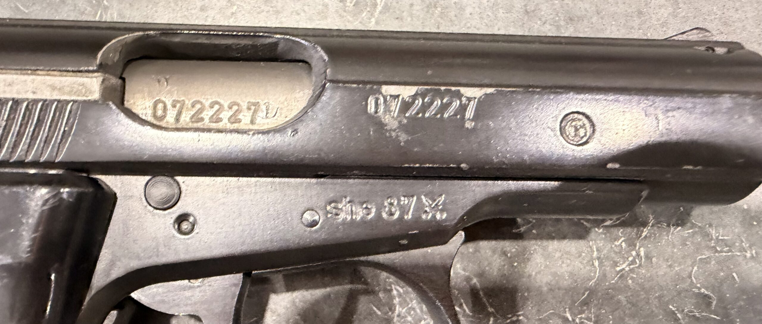 This pistol is in very good condition. The bore is in excellent condition. The frame and slide are matching numbers.
