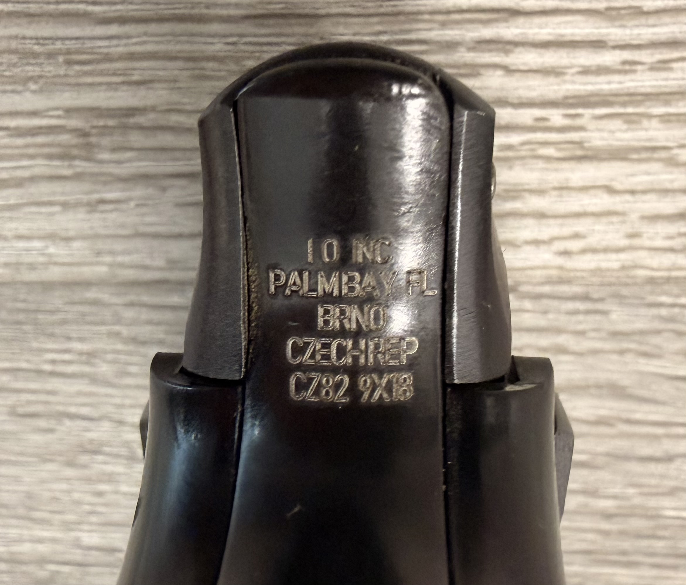 CZ82 Pistol with FREE original leather holster, 9×18 Makarov. This pistol is in very good condition. The grips are also in very good condition with no cracks. The bore is in very good condition. The pistol is numbers matching frame and slide. The pistol is 100% functional and comes with one 12 round magazine. The pistol is import marked on the rear strap underneath the hammer on the frame.
