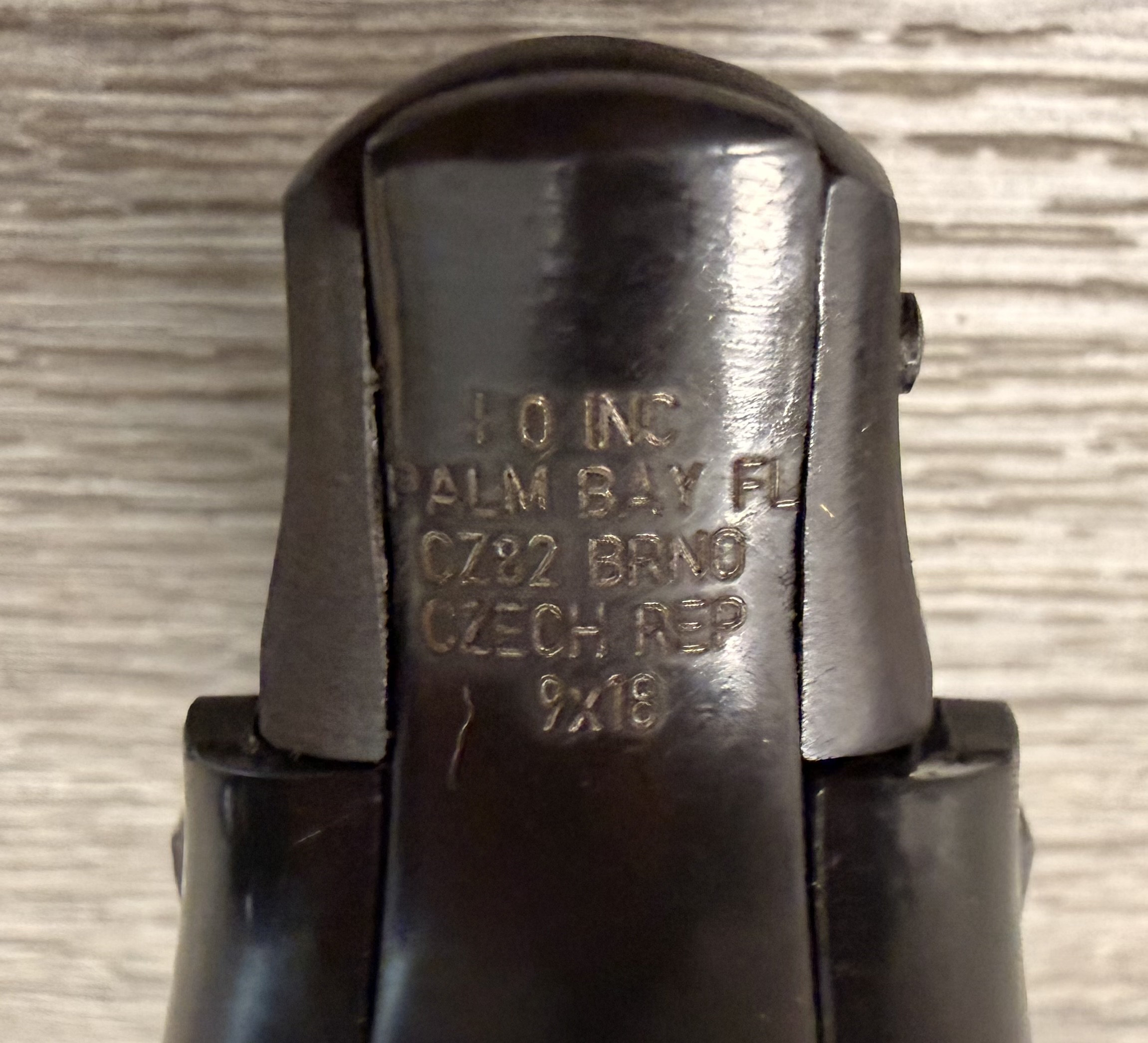 CZ82 Pistol with FREE original leather holster, 9×18 Makarov. This pistol is in excellent condition. The grips are also in very good condition with no cracks. The bore is in very good condition. The pistol is numbers matching frame and slide. The pistol is 100% functional and comes with one 12 round magazine. The pistol is import marked on the rear strap underneath the hammer on the frame.