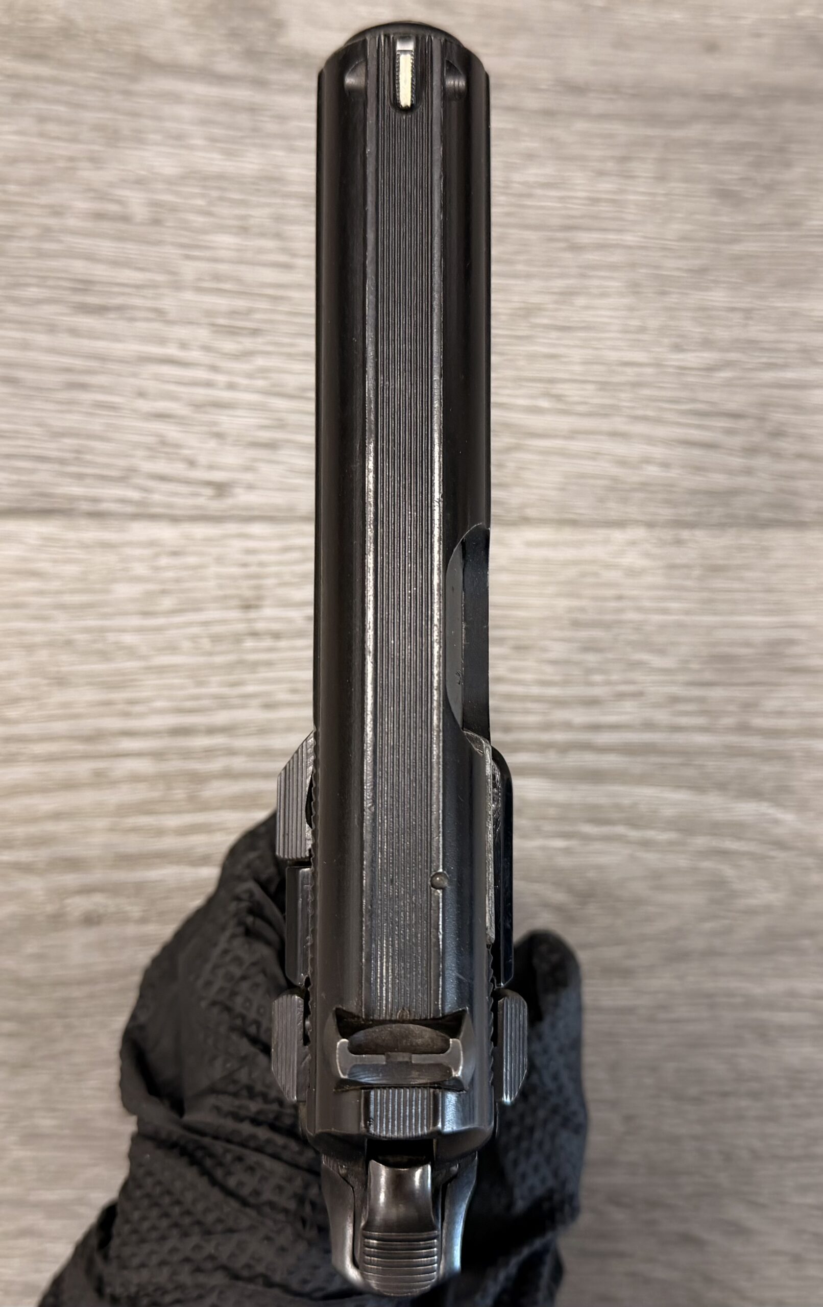 CZ82 Pistol with FREE original leather holster, 9×18 Makarov. This pistol is in very good condition. The grips are also in very good condition with no cracks. The bore is in very good condition. The pistol is numbers matching frame and slide. The pistol is 100% functional and comes with one 12 round magazine. The pistol is import marked on the rear strap underneath the hammer on the frame.