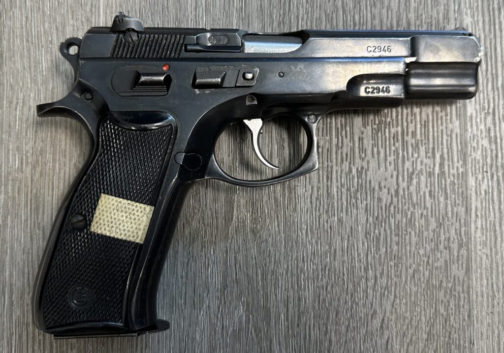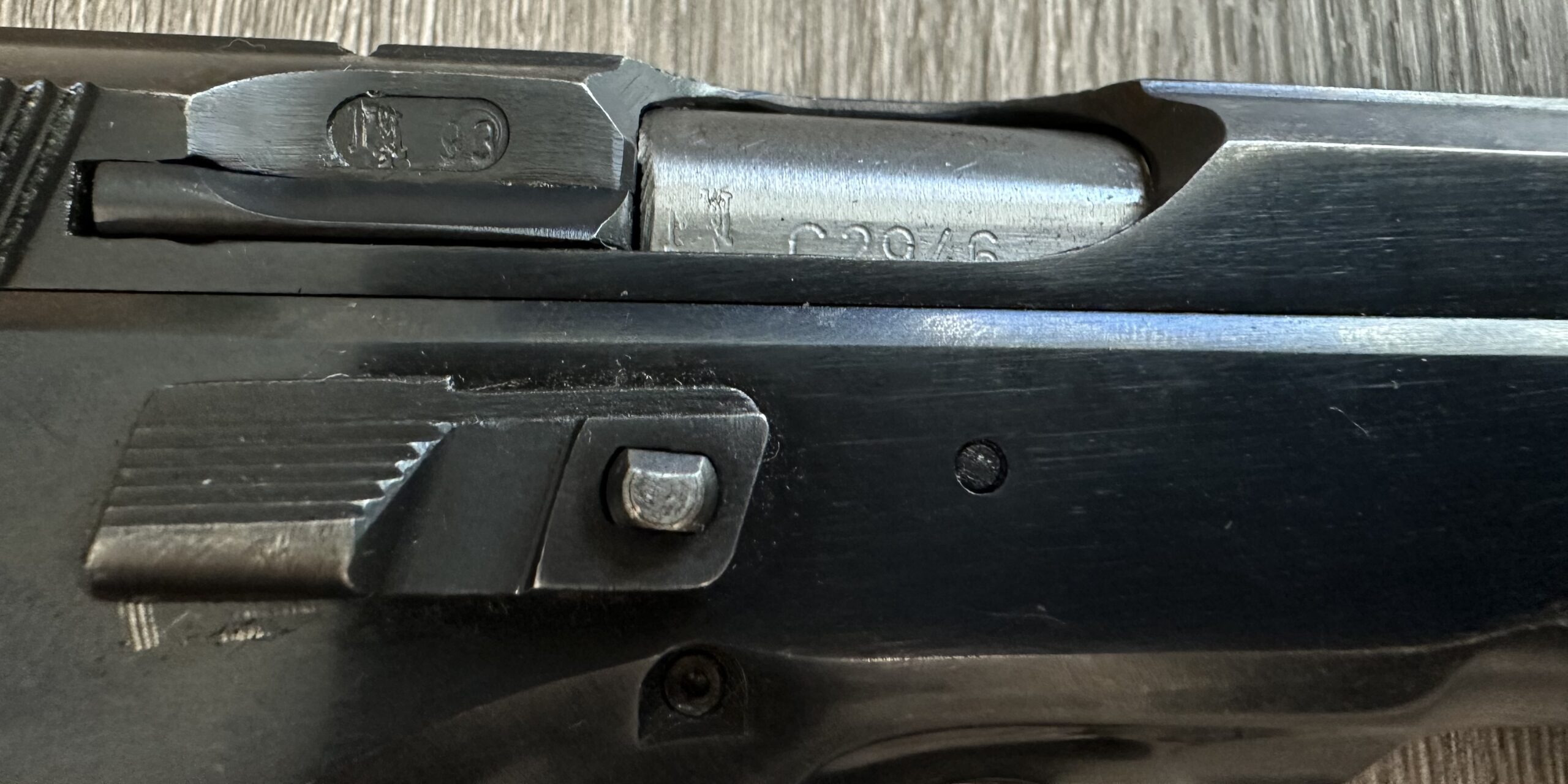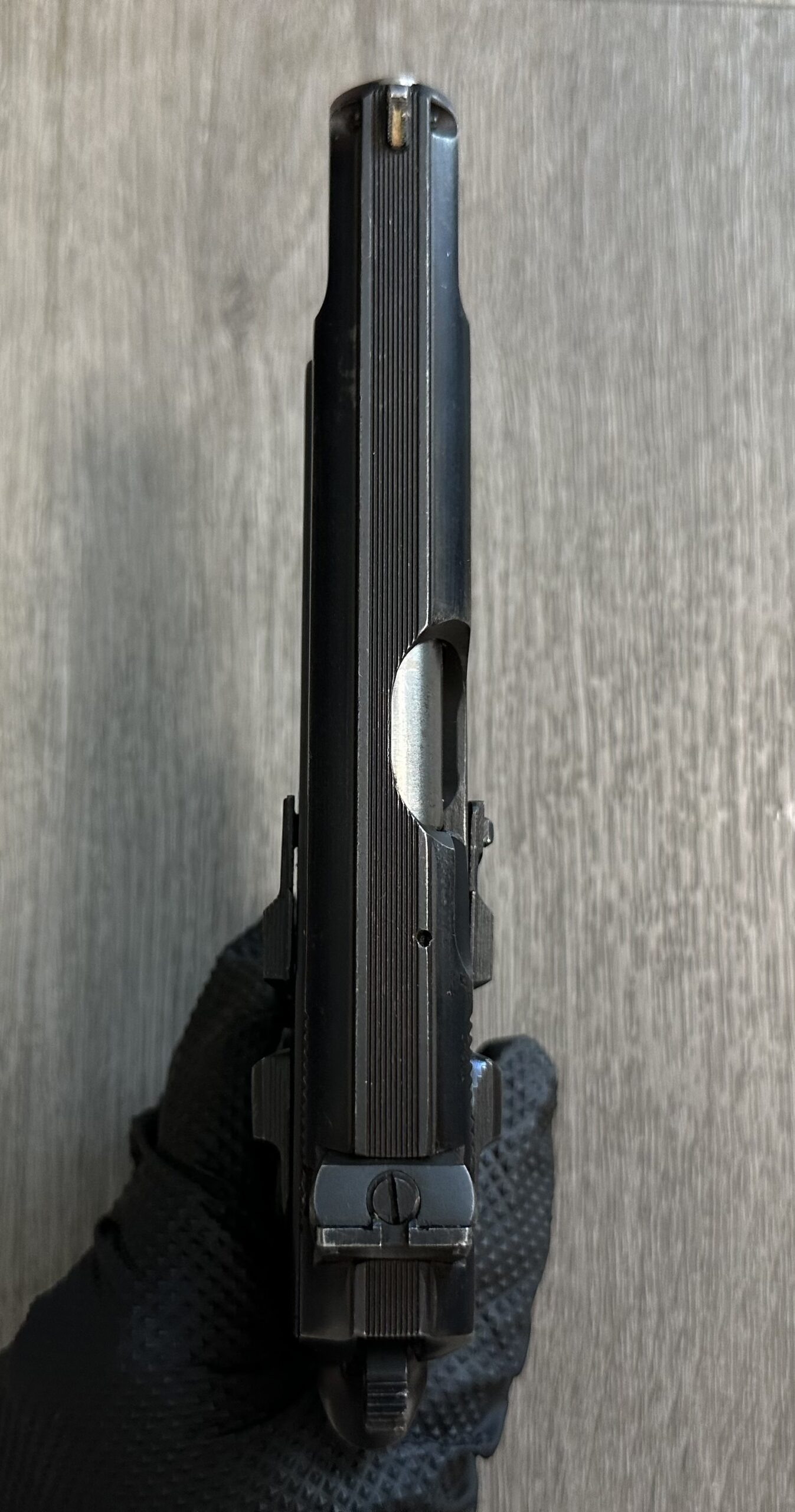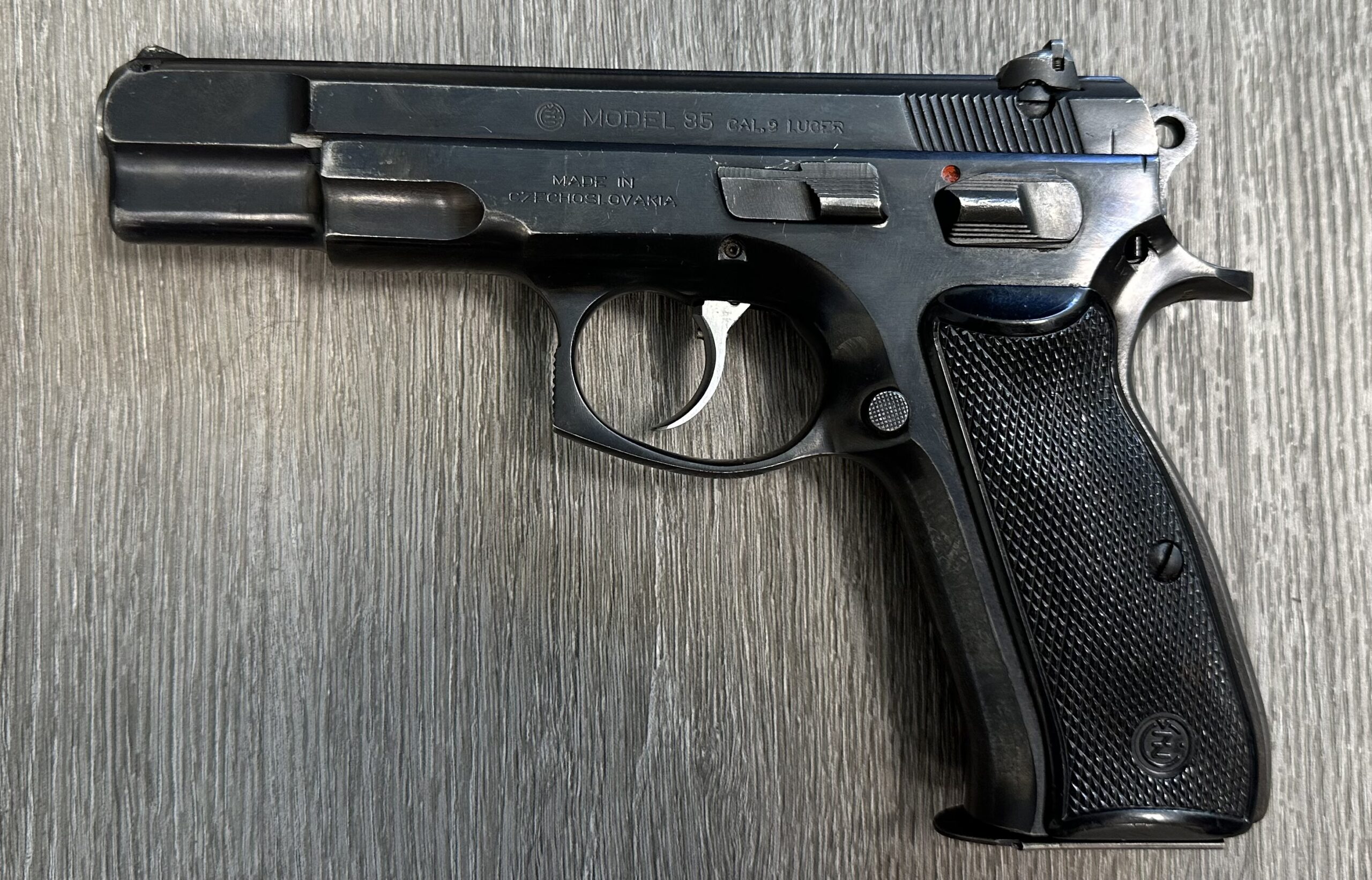 Czech CZ85 pistol chambered in 9MM Luger, serial number C2946. This pistol has blued finish and is in very good condition, with minimal surface wear. The grips are also in very good condition. The bore is excellent with strong grooves. The pistol is numbers matching frame and slide. The pistol is 100% functional and comes with one magazine. This firearm is equipped with an adjustable target sight. The pistol is import marked on the rear strap underneath the hammer on the frame.