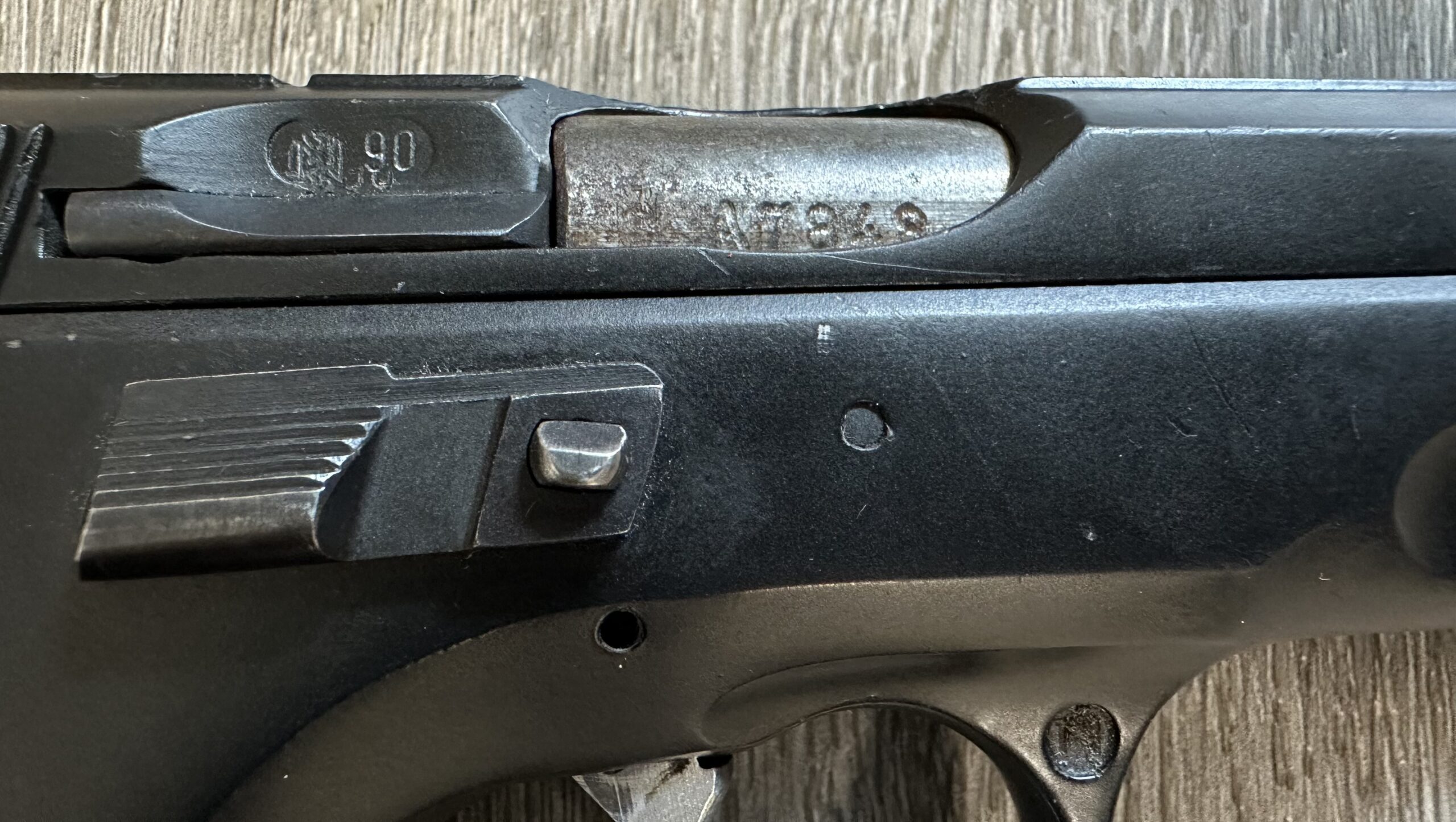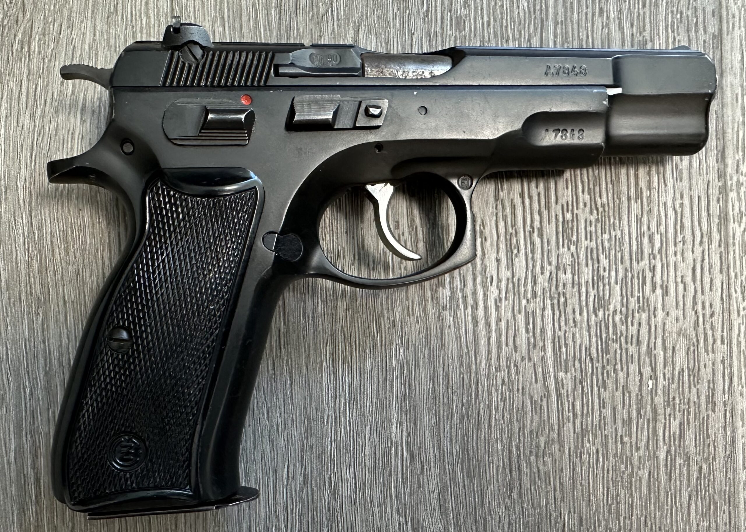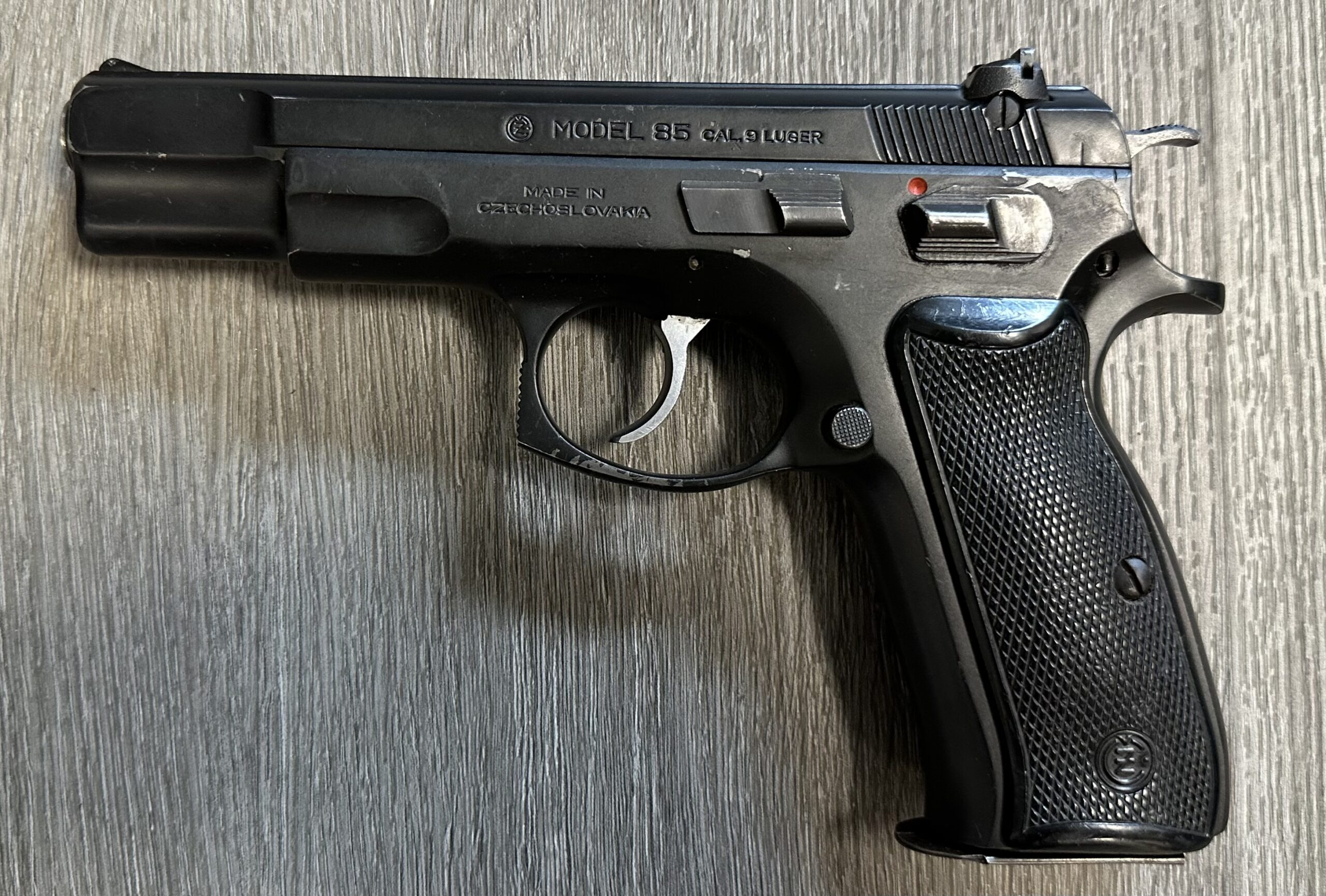 Czech CZ85 pistol chambered in 9MM Luger, serial number A7848. This pistol is in very good condition, with minimal surface wear. The grips are also in very good condition with no cracks. The bore is very good with strong grooves. The pistol is numbers matching frame and slide. The pistol is 100% functional and comes with one 15 round magazine. The pistol is import marked on the rear strap underneath the hammer on the frame.