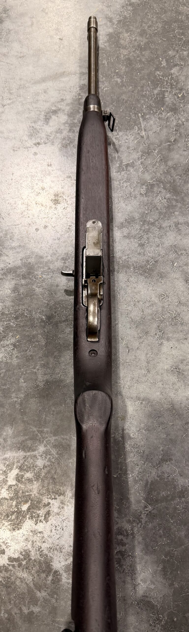 This example retains its Type 1 rear sight, Type 1 front barrel band, and push-button safety—key early features sought after by collectors. The receiver, barrel, and trigger group are in very good condition.
