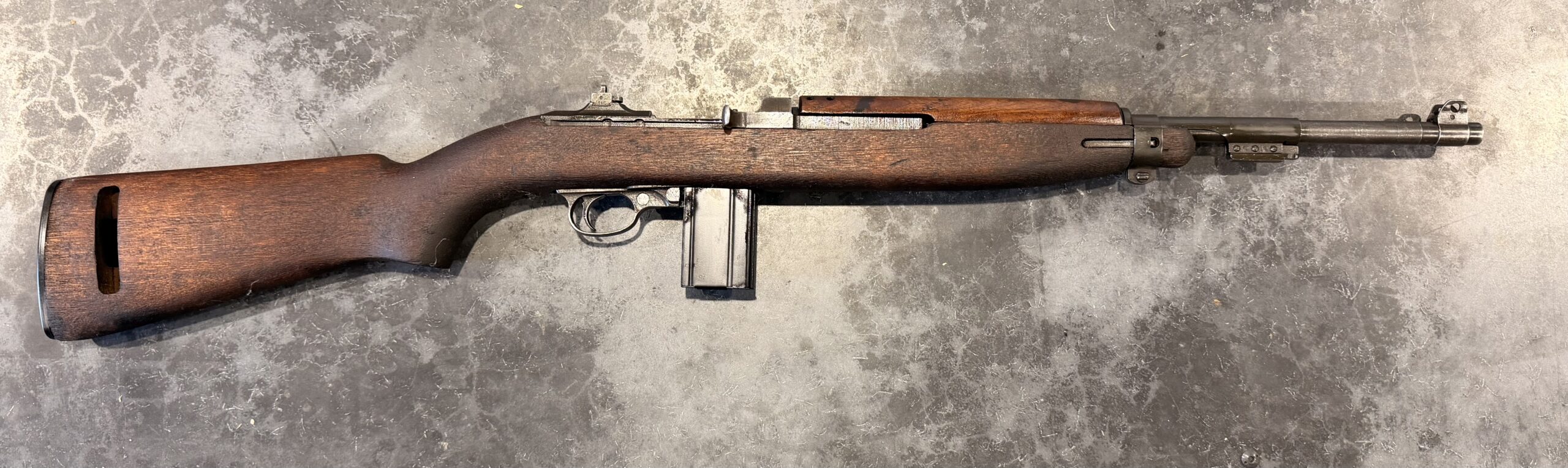 A highly desirable early-configuration Saginaw S G M1 Carbine, featuring classic WWII production characteristics.