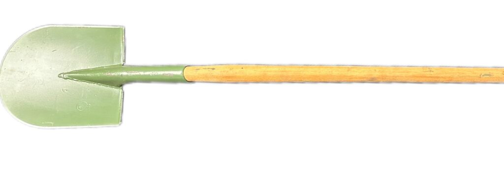 Surplus East German Pioneer Shovel. Solid wood handle, OD green painted metal. May have some scratches, wear, etc but are generally in good to very good condition. Measures approximately 43’’ high. Steel blade measures approximately 9’’ x 8’’. Genuine Military Surplus.