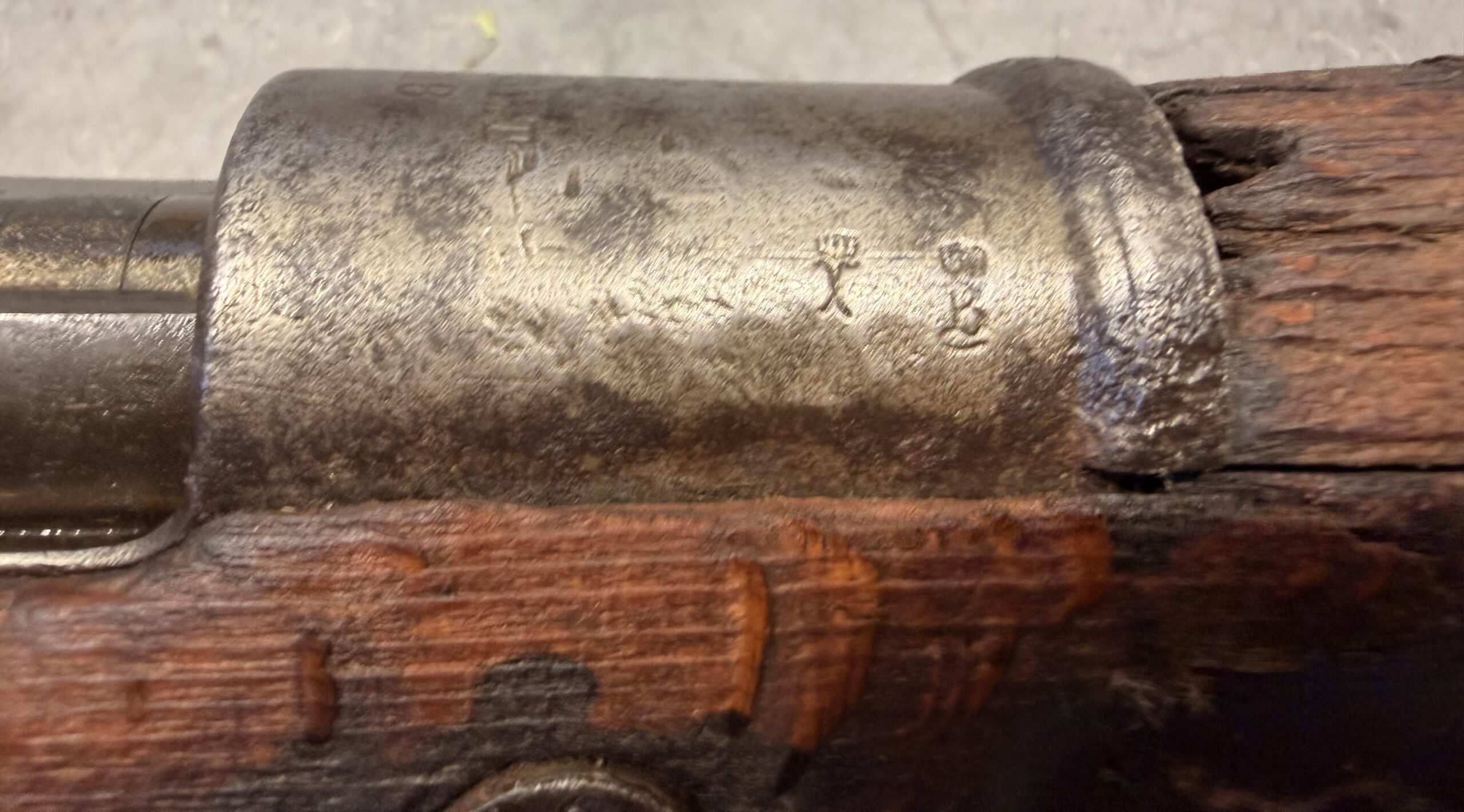 This rifle has non-matching serial numbers. The bore is in poor condition with no visible rifling, while the metal finish remains in fair condition.