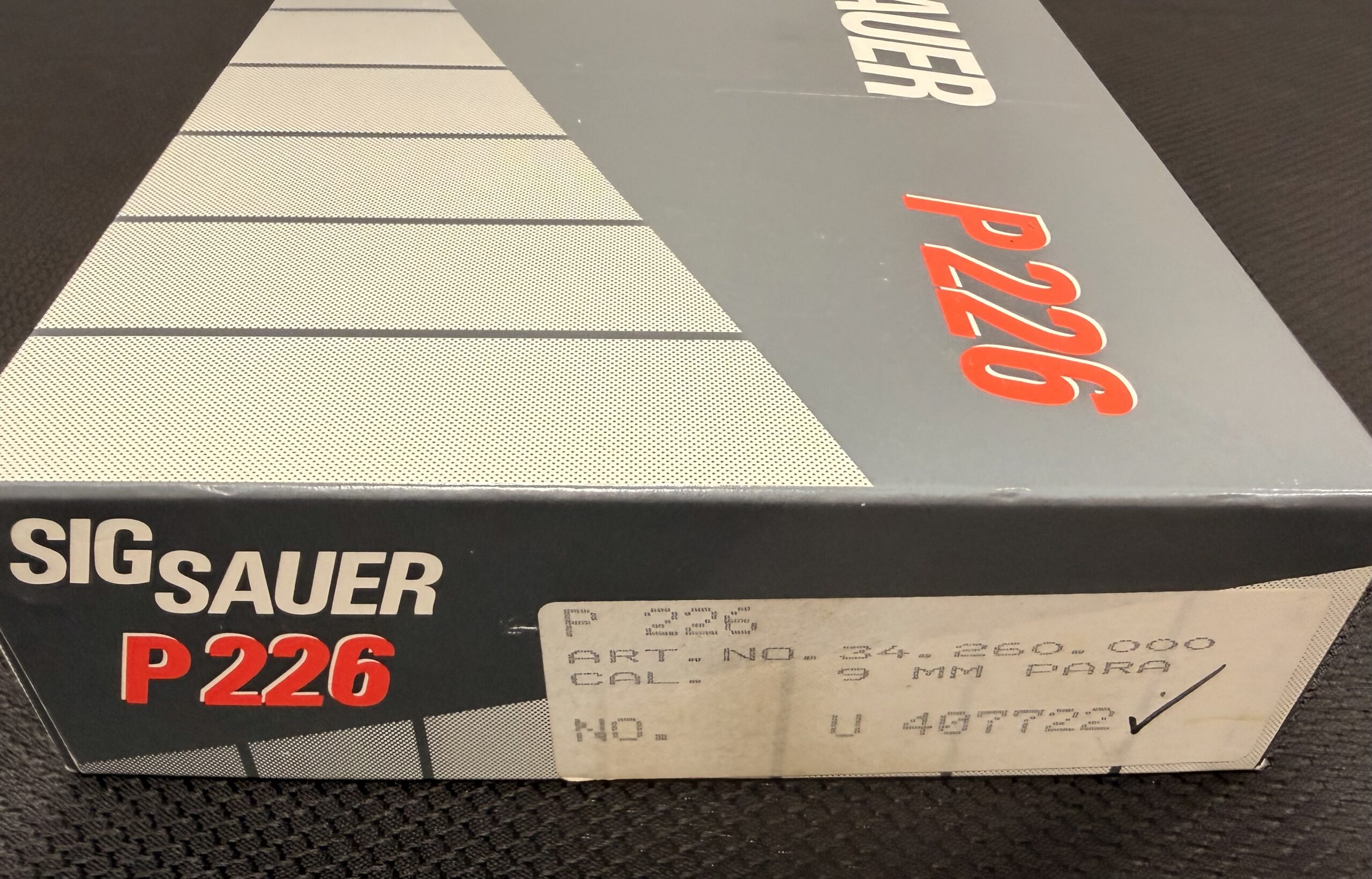 We’ve just received German SIG Sauer P226 in 9mm Parabellum / 9x19mm with the factory original box, Serial Number U407722.